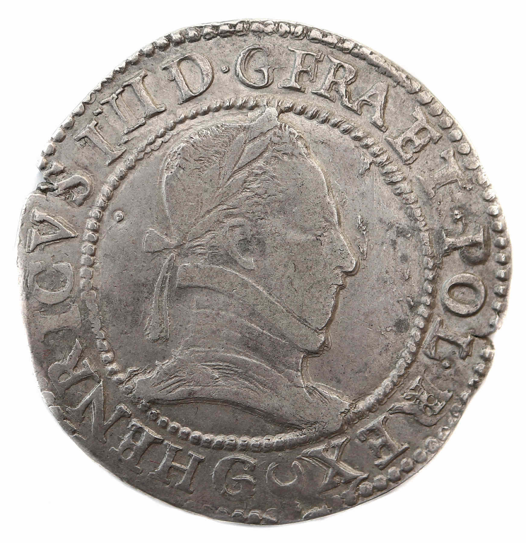 .HENRICVS.III.D.G.FRA.ET.POL.REX'dif)G Buste lauré et cuirassé à