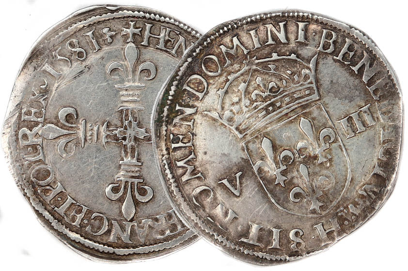 revers dans la légende sous l'écu) Point secret : 9éme (au droit) Millésime : 1581 Chiffre de frappe connu : 57 101 ex (avec quart d'écu) Indice de rareté : R4 |
