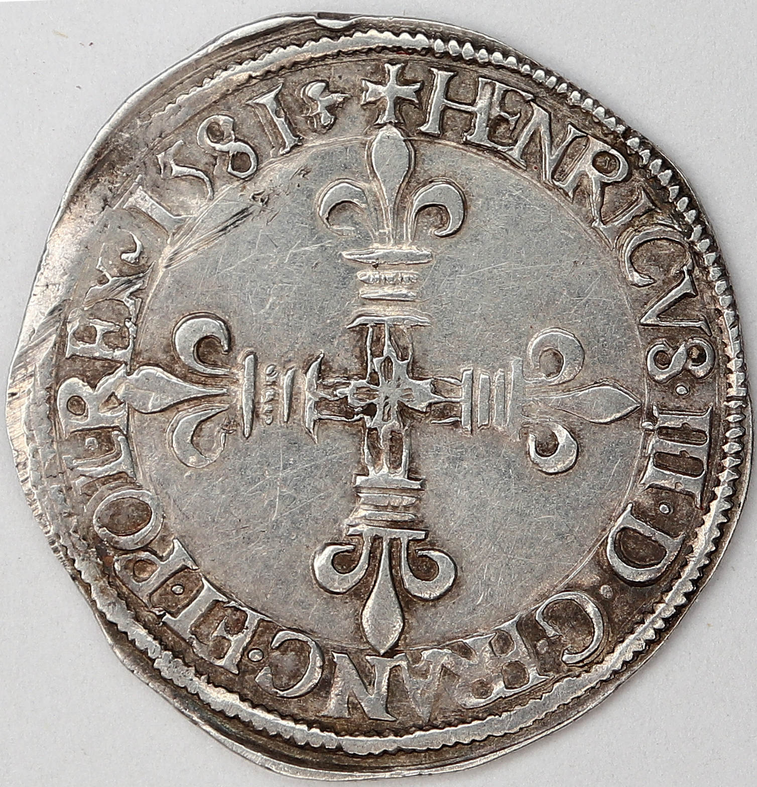 III.D G.FRANC.ET.POL.REX.(dif)1581(dif) Henri III par la grâce de Dieu roi des Francs et des Polonais Croix fleurdelisée |
