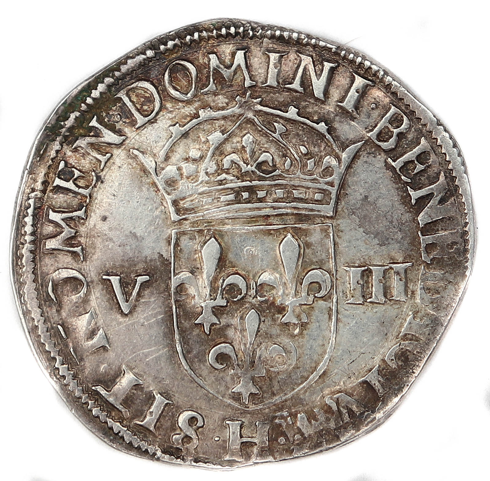 .SIT NOMEN DOMINI.BENEDICTVM.H Béni soit le nom du Seigneur Ecu de France couronné accosté