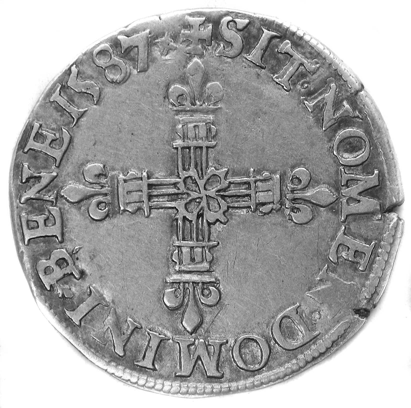 +SIT NOMEN DOMINI.BENE 1587(dif) Béni soit le nom du Seigneur Ecu de France couronné accosté