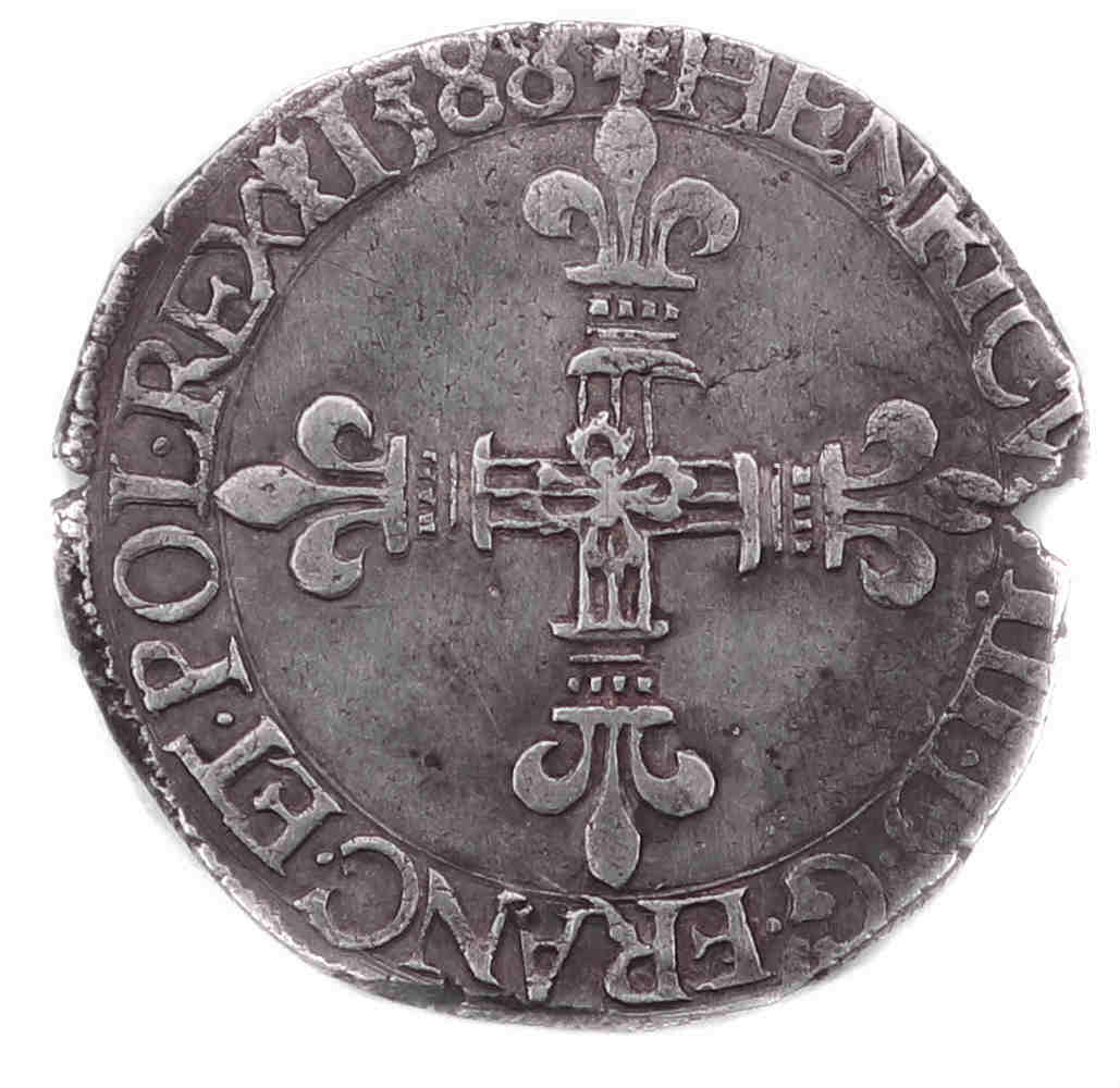 III.D G.FRANC.ET.POL.REX(dif).1588 Henri III par la grâce de Dieu roi des Francs et des Polonais Croix fleurdelisée |