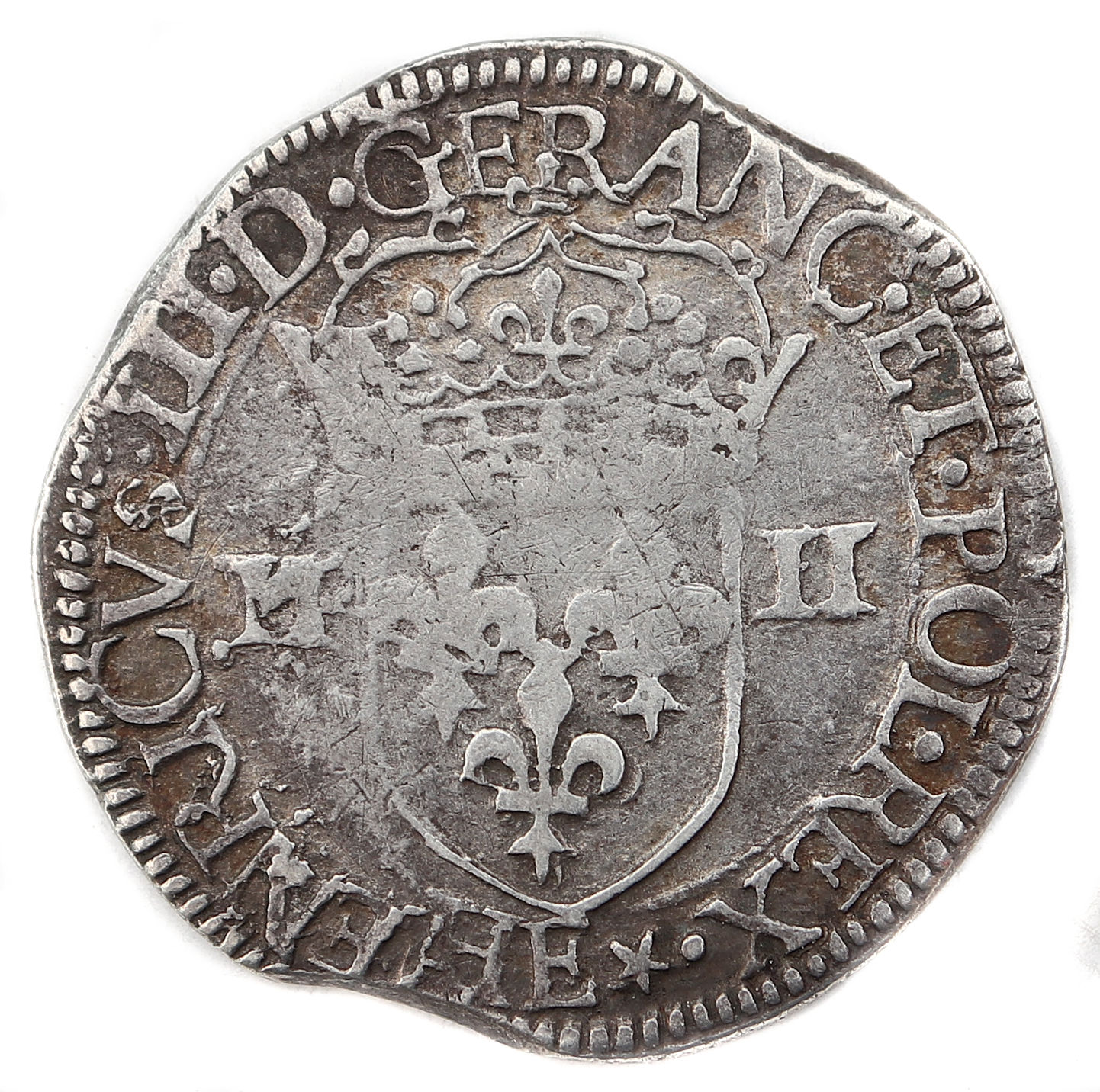 III.D G.FRANC.ET.POL.REX.(dif)E Henri III par la grâce de Dieu roi des Francs et des Polonais Ecu de France couronné accosté