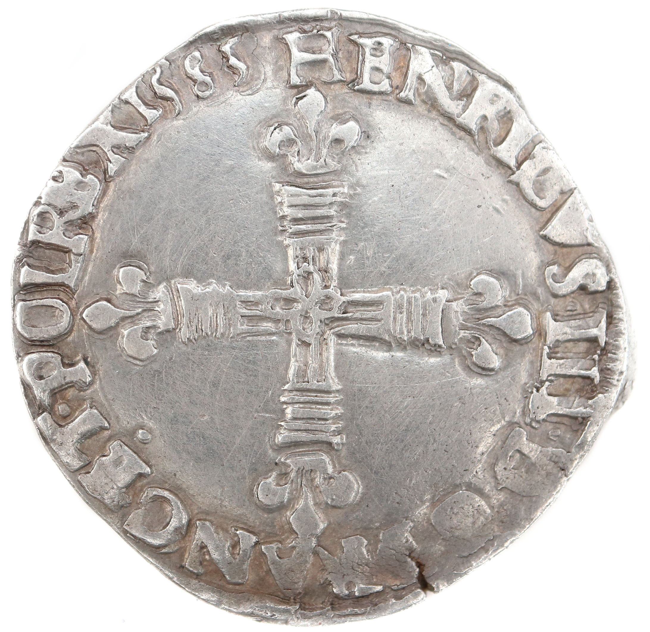 III.D G.FAN.ET.POL.REX.1585 Henri III par la grâce de Dieu roi des Francs et des Polonais Croix fleurdelisée |