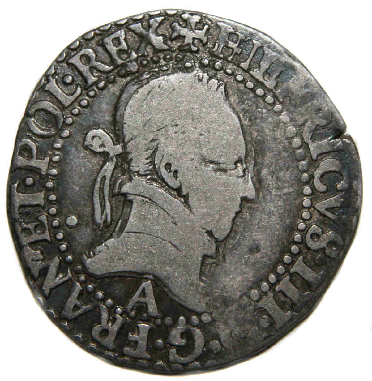 III.D.G.FRAN.ET.POL.REX Henri III par la grâce de Dieu roi des Francs et des Polonais Buste lauré et cuirassé, au col