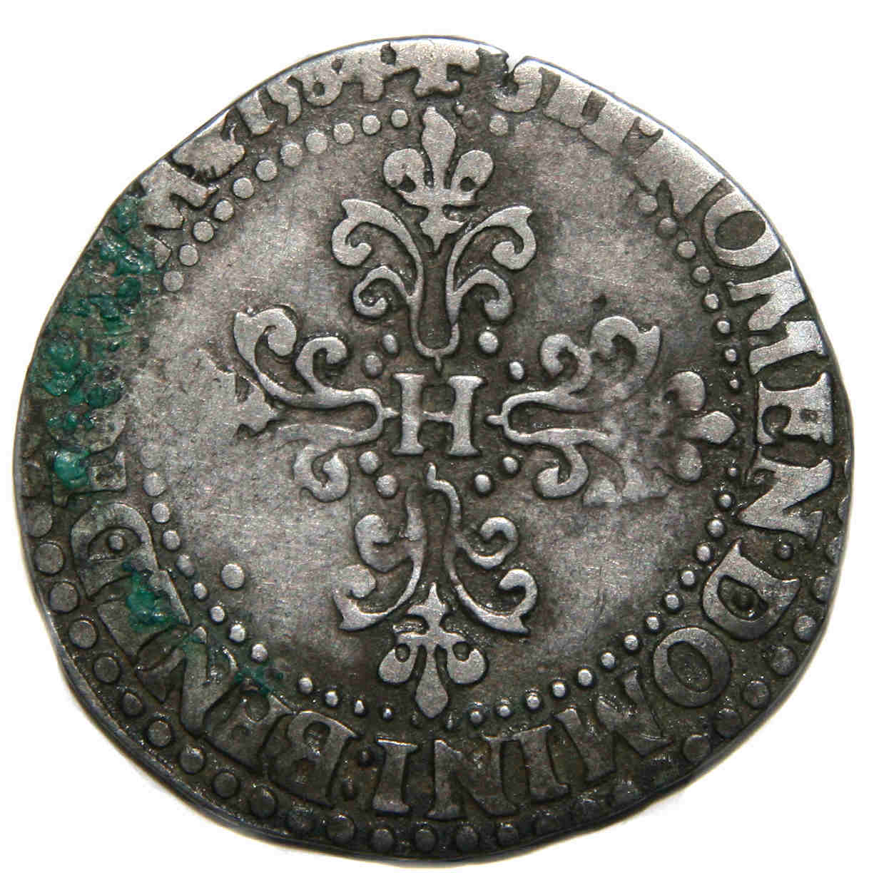 importante. La monnaie reste assez belle avec une frappe un peu décentrée au revers, ce dernier présentant aussi des concrétions vertes. |