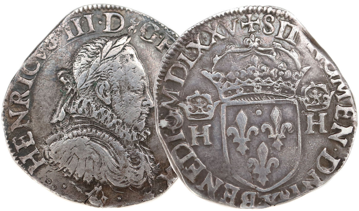revers sous l'écu) Point secret : Non Millésime : MDLXXV Chiffre de frappe connu : 129 438 ex. (avec 1/2 testons) |