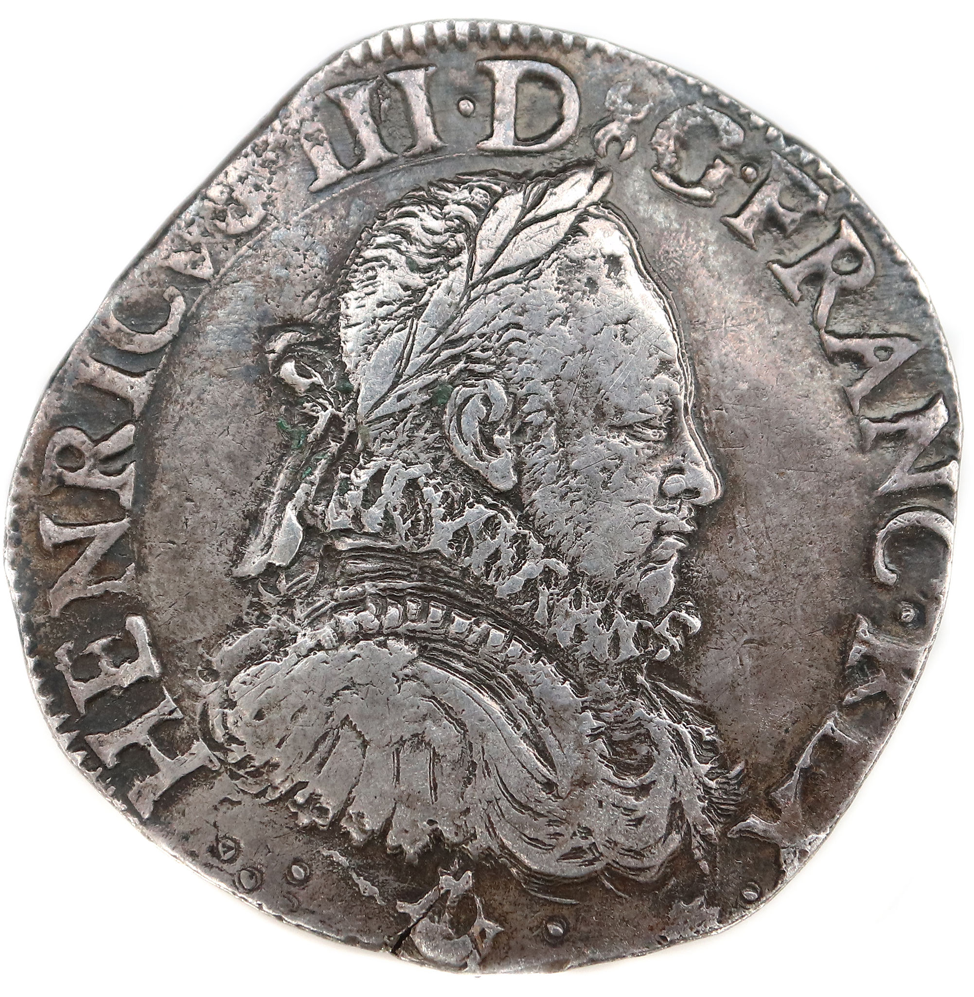 HENRICVS III.D(dif)G.FRANC.REX(dif)(nef) Henri III par la grâce de Dieu