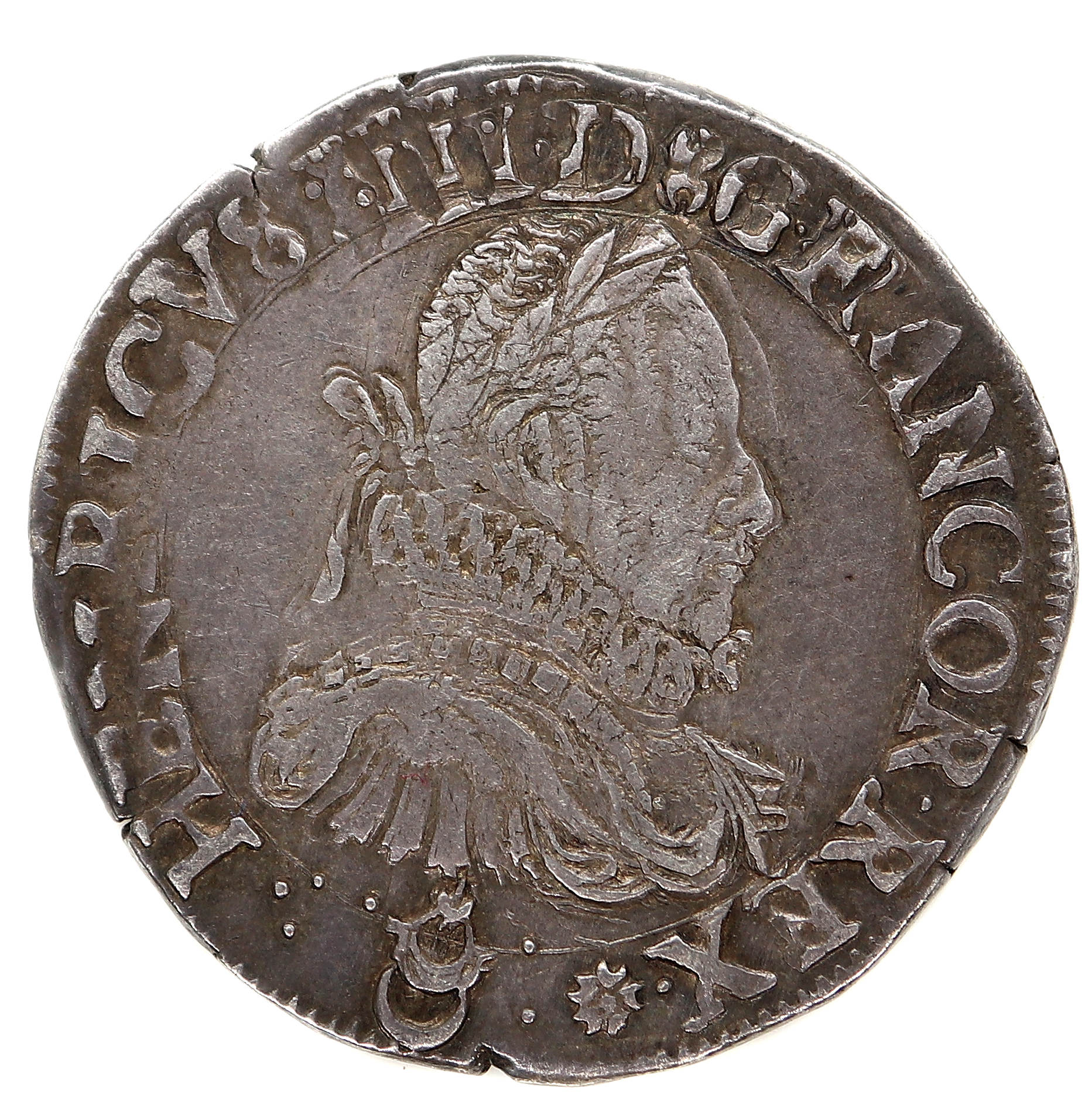 HENRICVS III.D(dif)G.FRANCO.REX(dif)(nef) Henri III par la grâce de Dieu