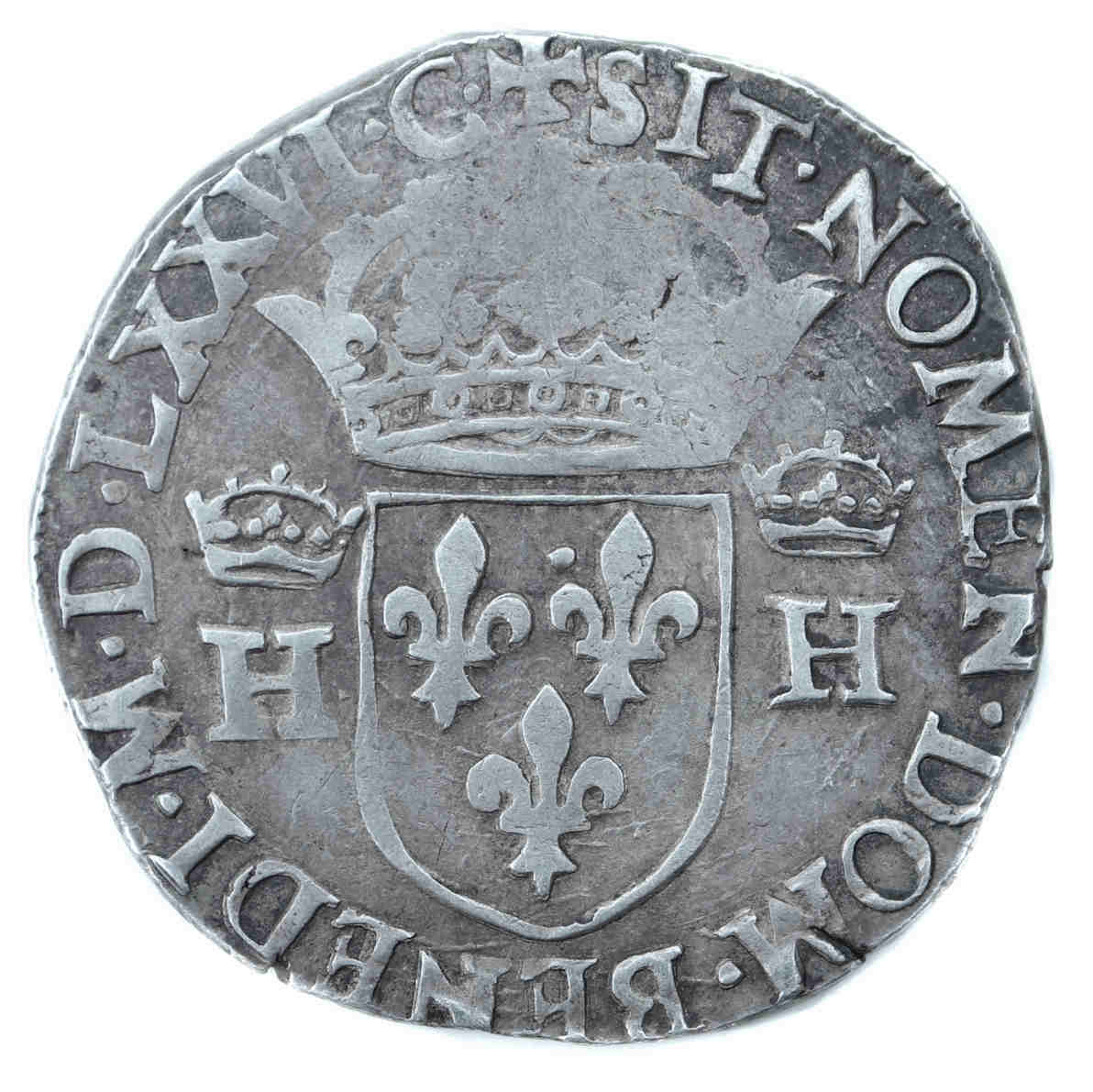 MDLXXVI.C Béni soit le nom du Seigneur Ecu de France couronné, accosté