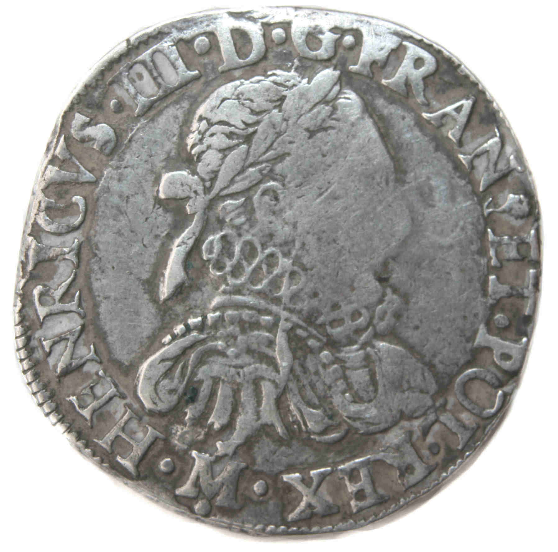 . HENRICVS III.D.G.FRAN(dif).ET.POL.REX.M (nef sur croissant) Henri III par la grâce de Dieu