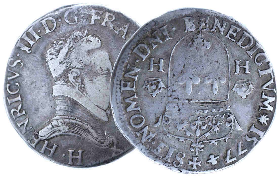 .HENRICVS.III.D.G.FRA.ET.POL.REX.H Henri III par la grâce de Dieu