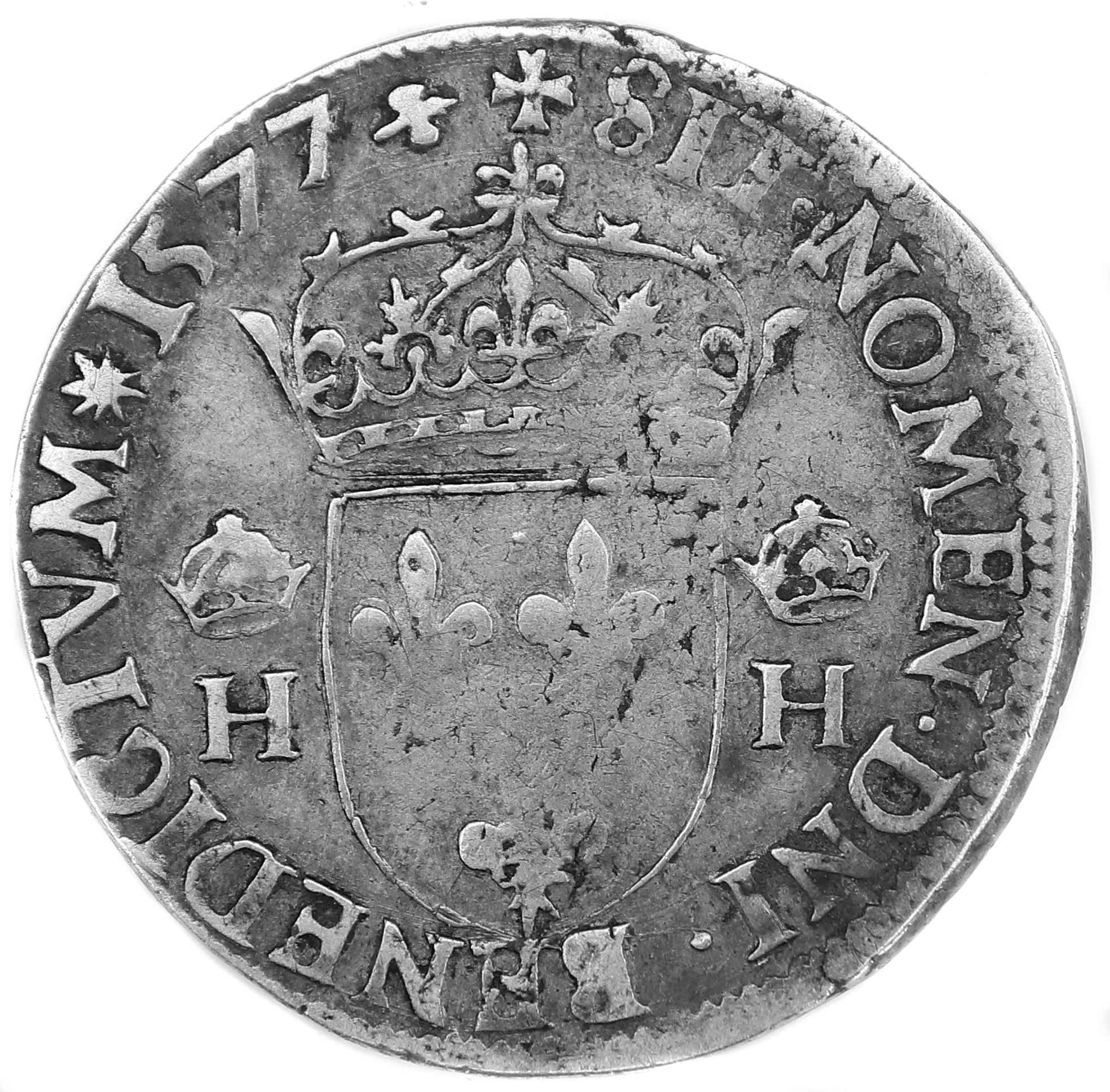 Lettre d'atelier : H Point secret : Non Millésime : 1577 Chiffre de frappe connu : 18 737 ex. (avec 1/2 testons) Indice de rareté : R2 |