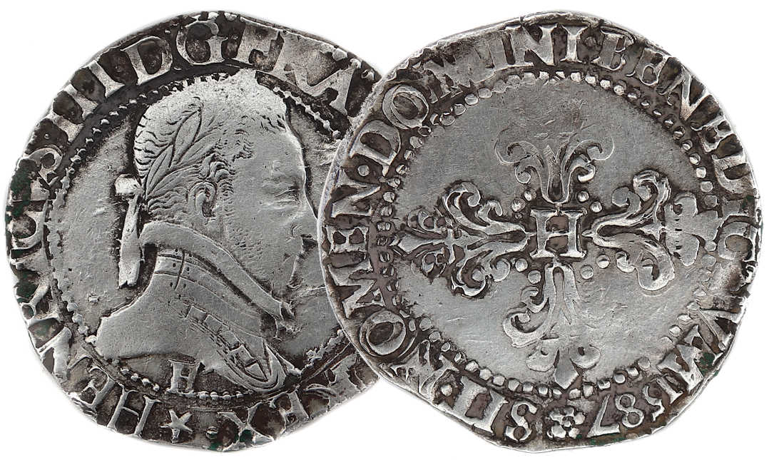 droit sous le buste) Point secret : Non Millésime : 1587 Chiffre de frappe connu : 174 225 ex (avec 1/4 de franc) |