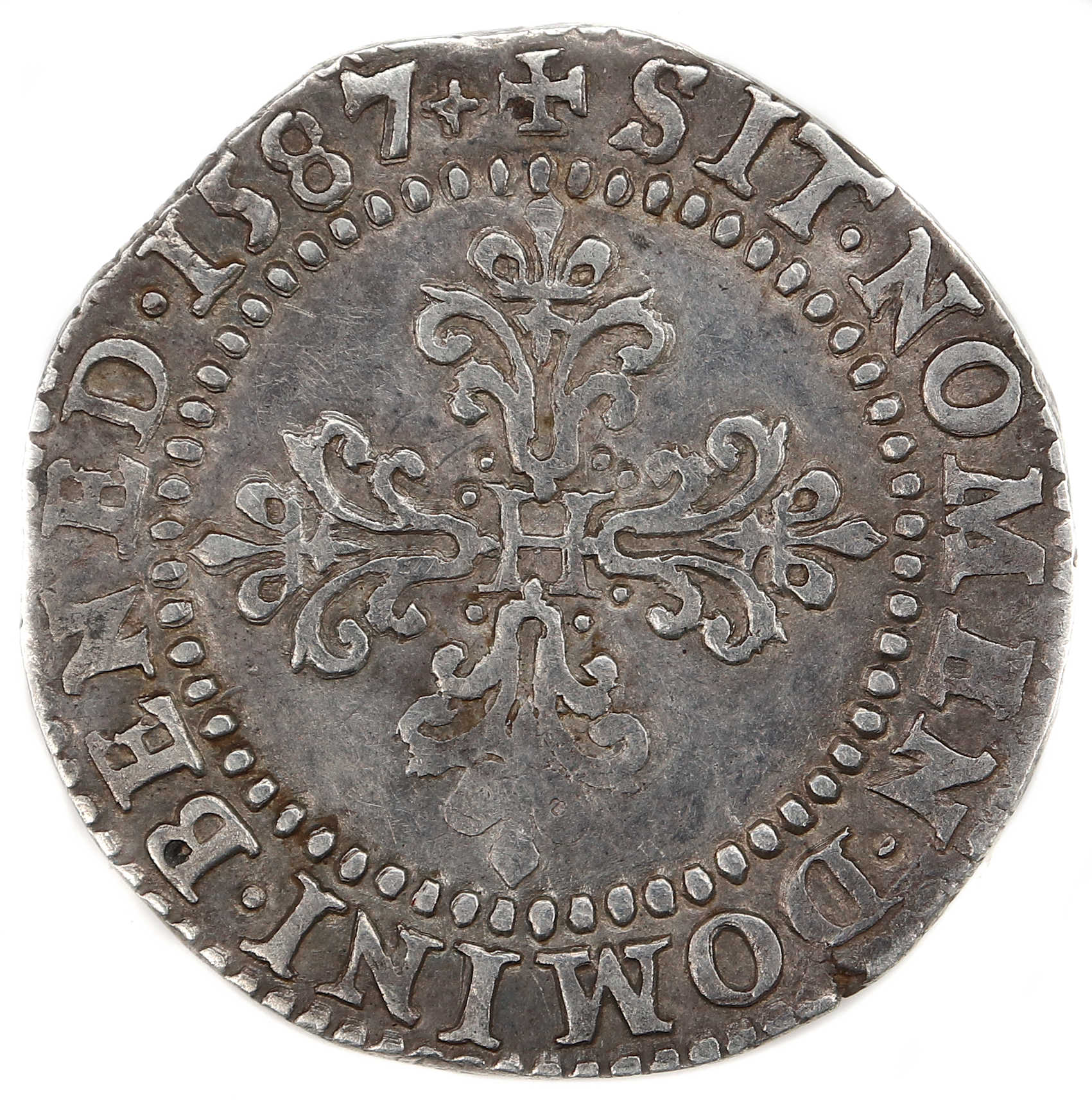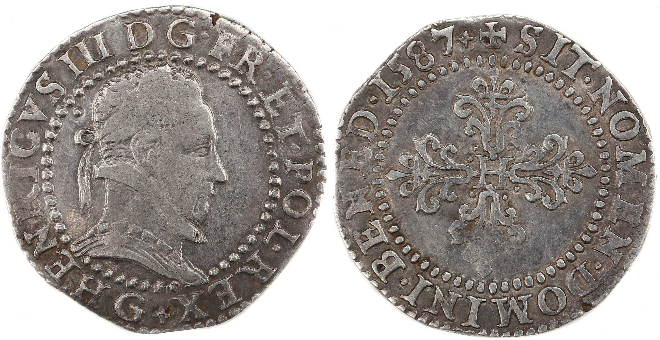 droit) Millésime : 1587 Chiffre de frappe connu : 180 884 ex (avec 1/4 DE FRANC) |