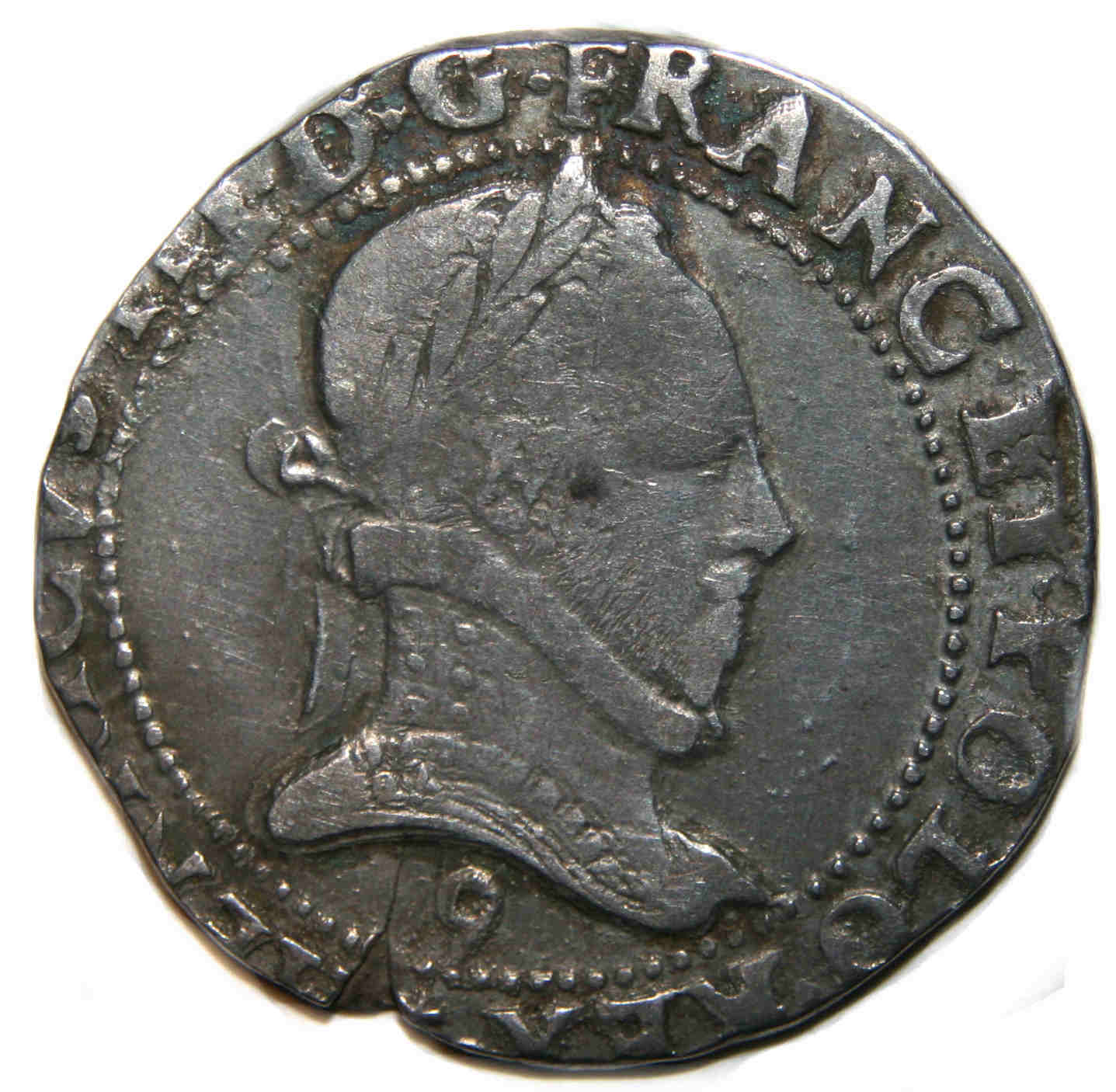 HENRICVS III.D G.FRANC.ET.POL.REX.(dif) C Henri III par la grâce de Dieu roi des Francs et des Polonais Buste lauré et cuirassé, au col