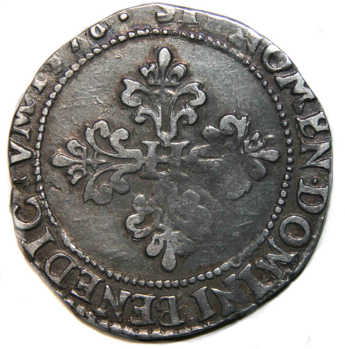 DOMINI.BENEDICTVM.1576 Béni soit le nom du Seigneur Croix formée d'une H au coeur et