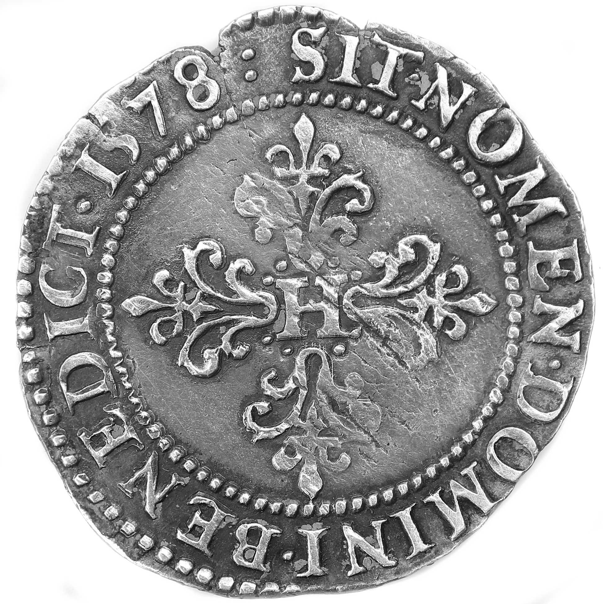droit dans la légende sous l'effigie) Point secret : OUI (huitième au droit) Millésime : 1578 Chiffre de frappe connu : 72 484 ex (avec francs et 1/4 de franc) |
