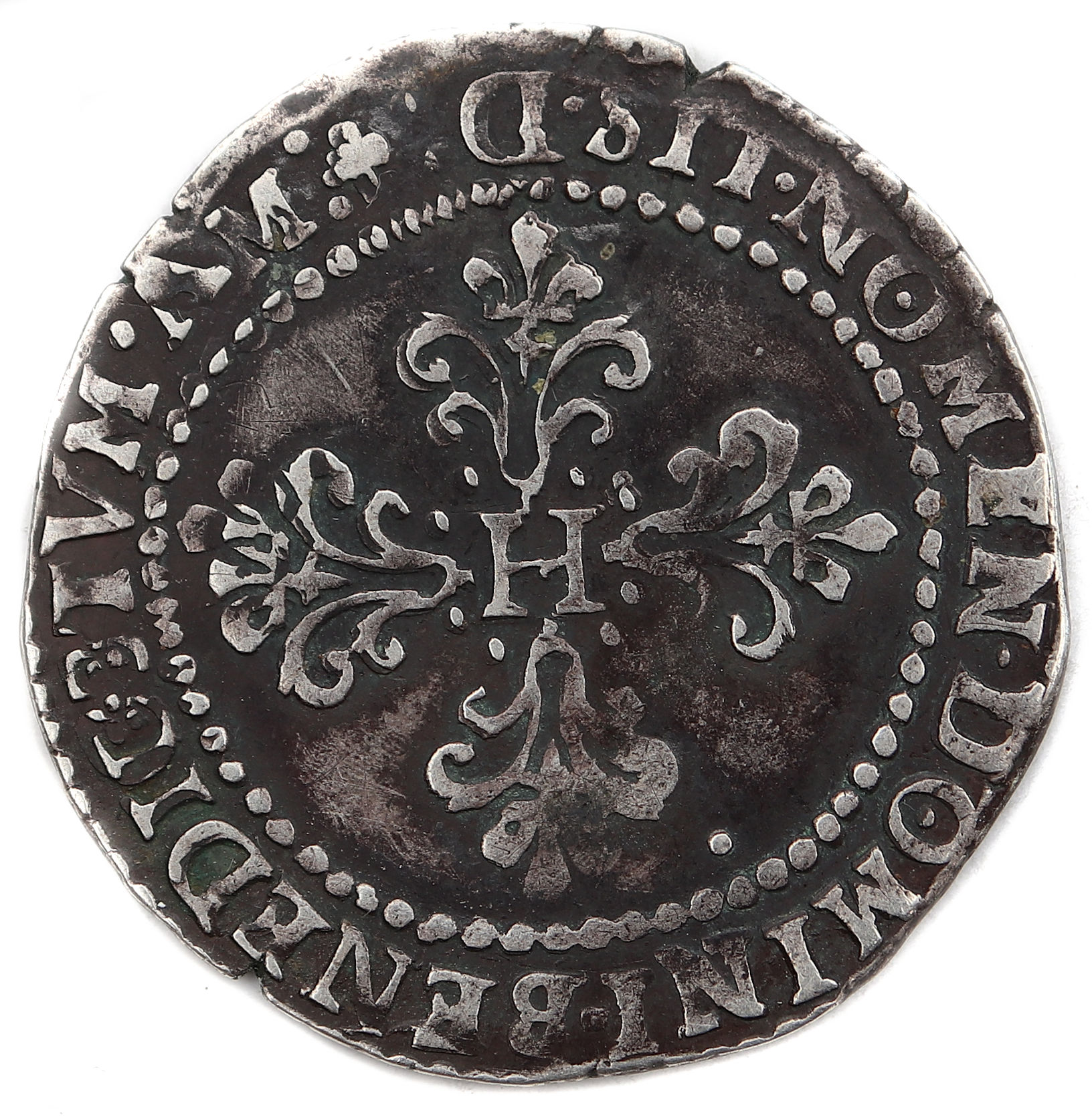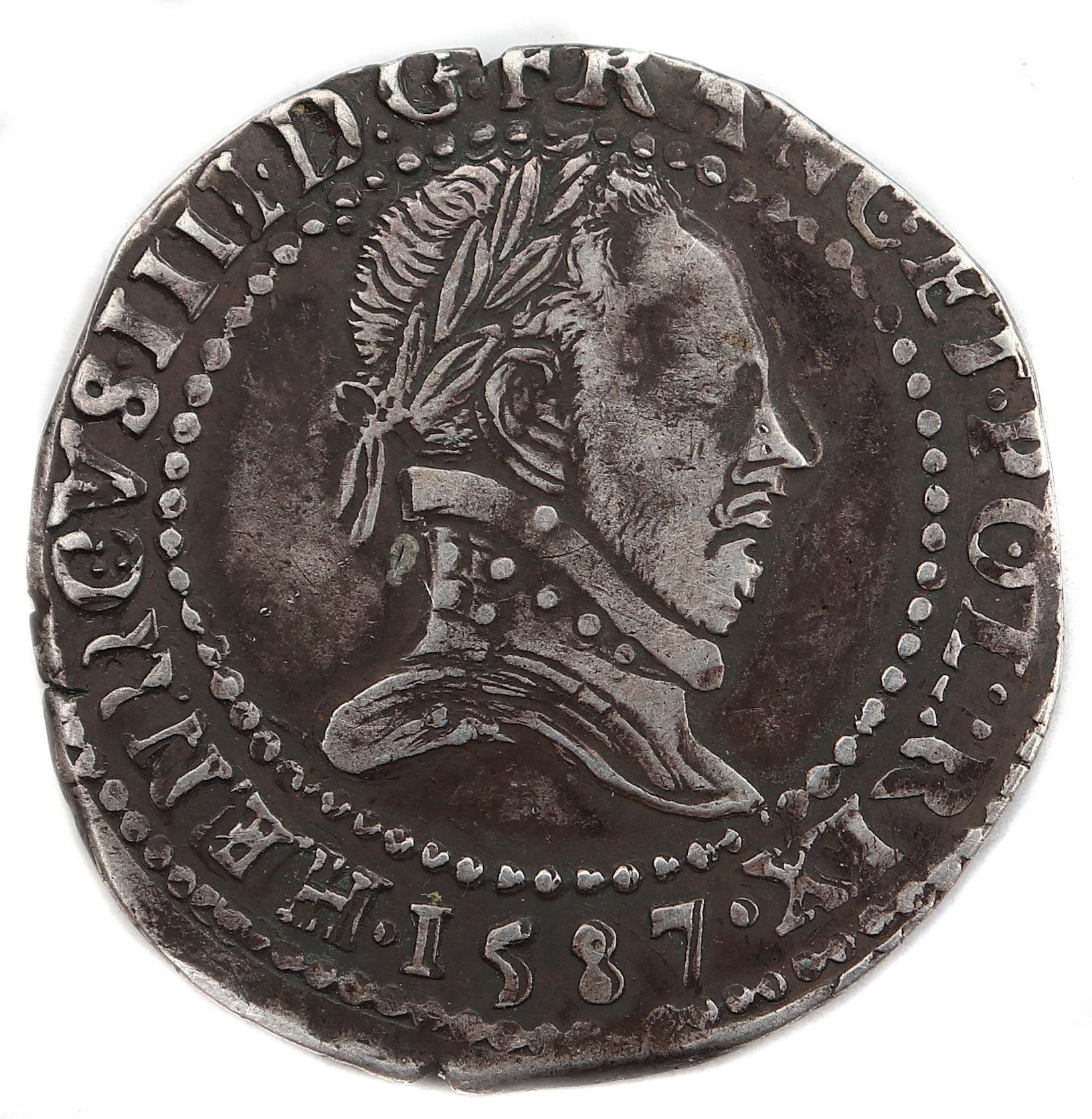 d'ateliers, la production fut importante à Lyon en 1587. Trés belle monnaie avec une patine foncée.L'effigie assez bien venu à la