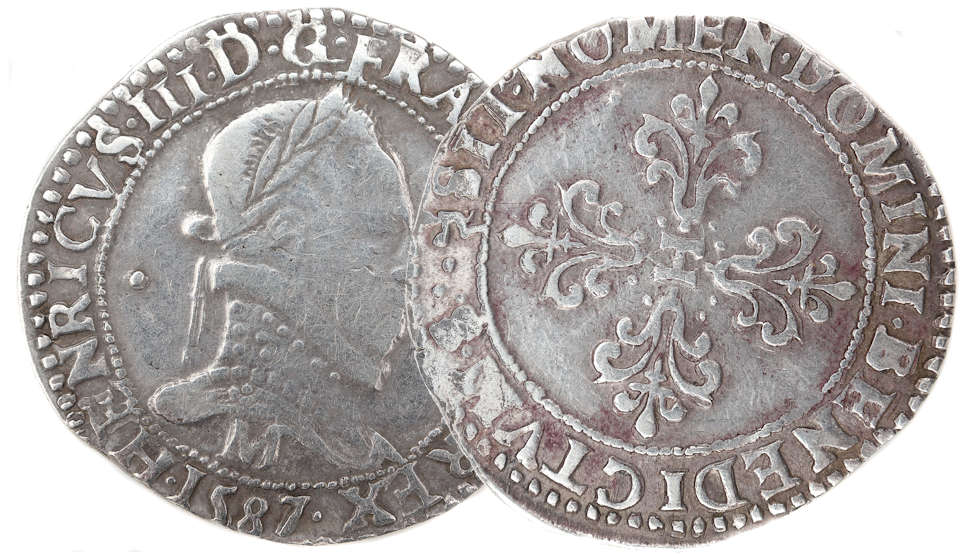 et au revers) Millésime : 1587 Chiffre de frappe connu : 49 645 ex (avec 1/4 de Franc) |