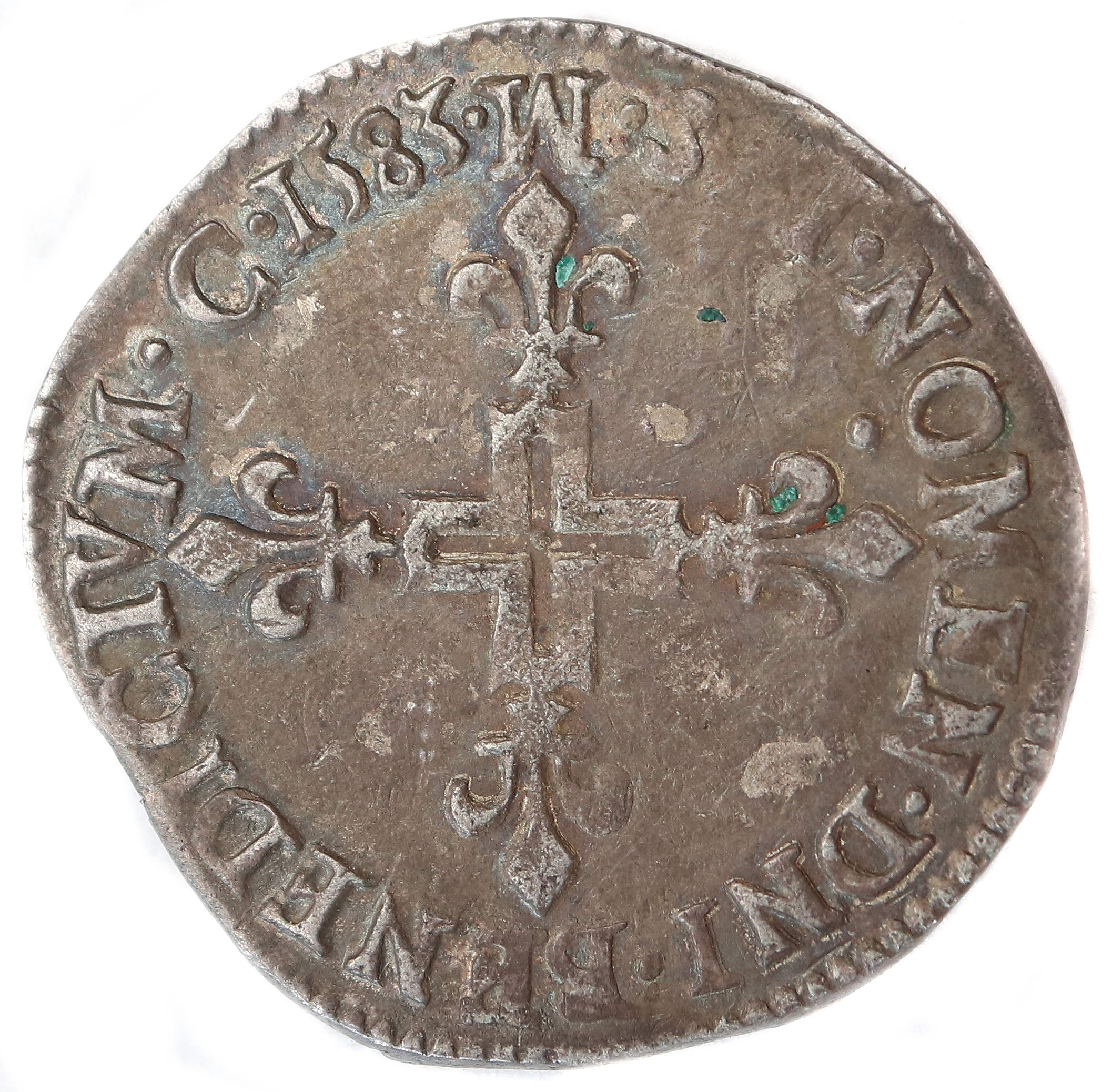 exemplaires,ce millésime est donc trés rare. La monnaie est agréable pour le type. Le flan est un peu irrégulier et la monnaie parait assez cuivreuse.Le millésime 1583 reste assez rare. Provenance : MDC décembre 2022. Axe des coins : 10 h. |