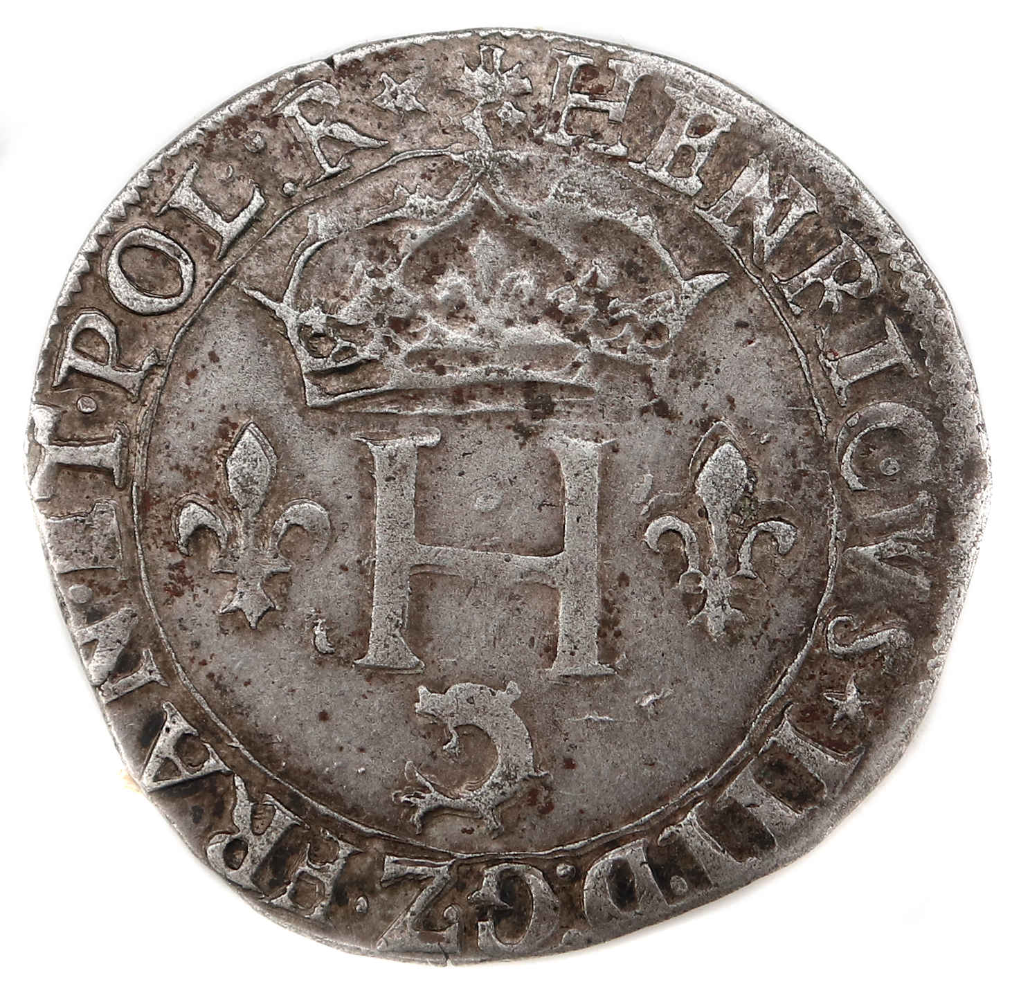 +HENRICVS(étoile)III.D:G.Z.FRAN.ET.POL.R(étoile) Henri III par la grâce de Dieu roi des Francs et des Polonais H couronnée entre 2 lis et un dauphin |