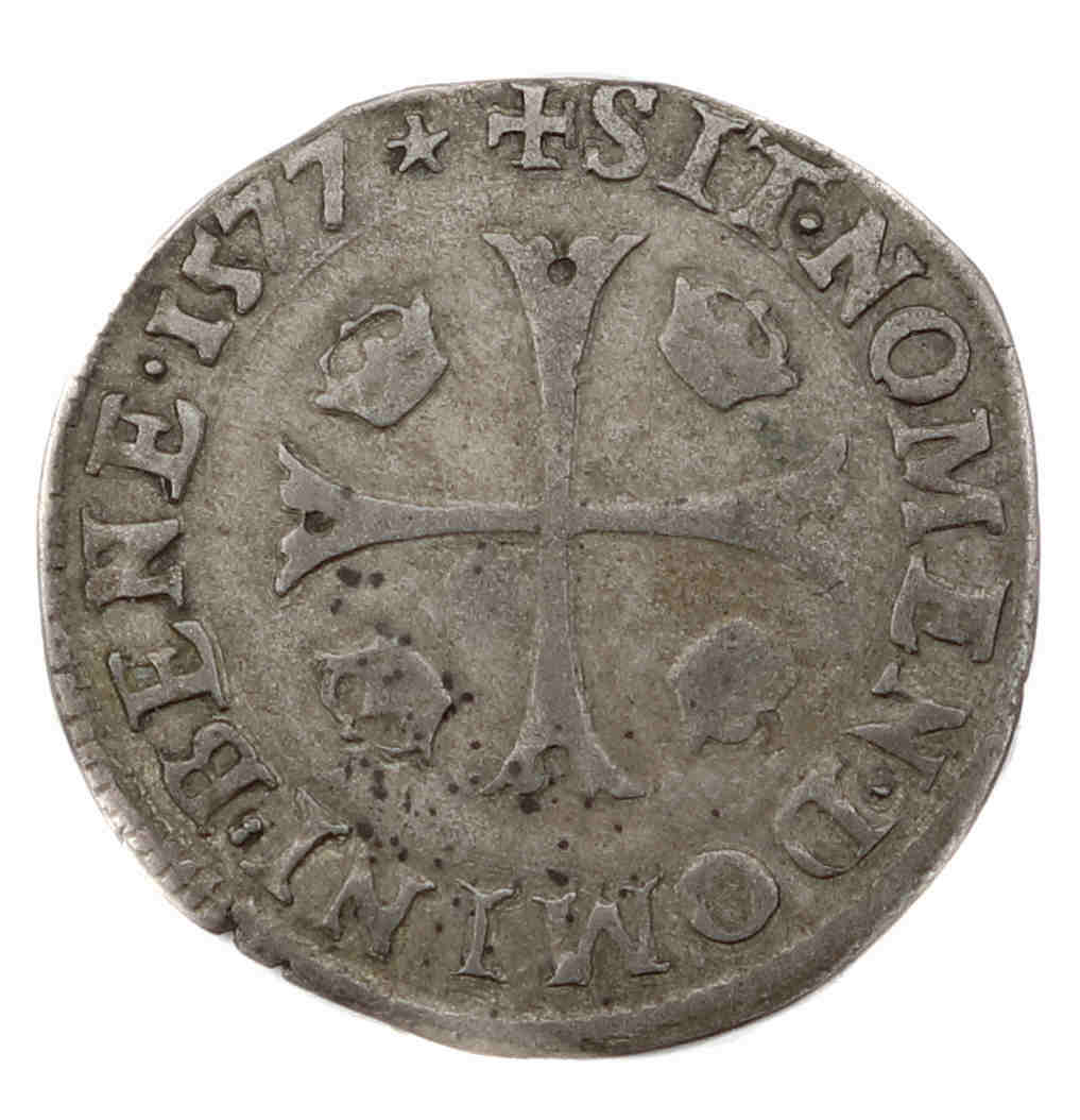 droit sous l'écu) Point secret : 8éme (au droit) Millésime : 1577 Chiffre de frappe connu : 273 360 ex |