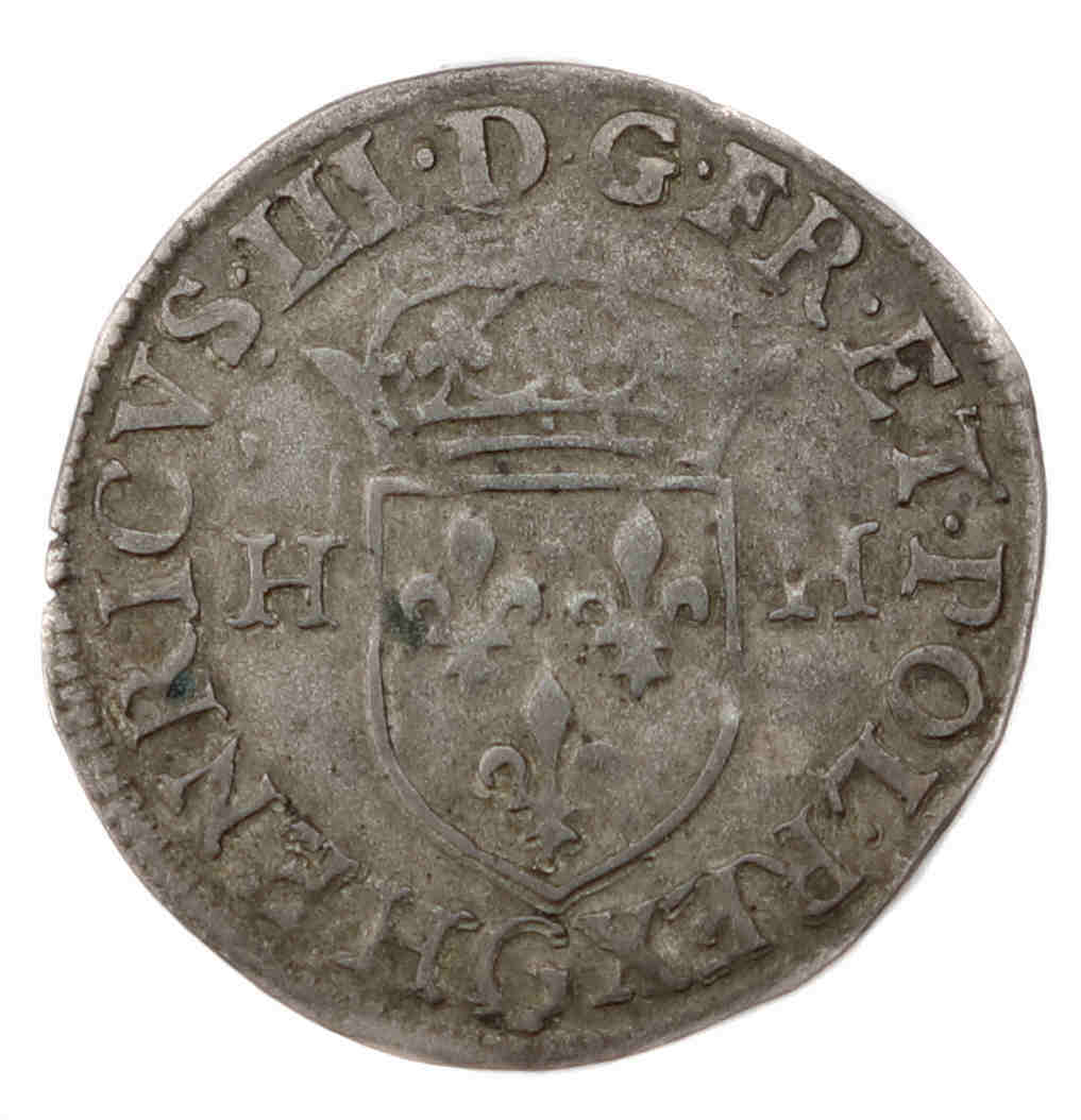 HENRICVS.III.D.G..FR.ET.POL.REX G Henri III par la grâce de Dieu roi des Francs et des Polonais Ecu de FRANCE couronné, accosté