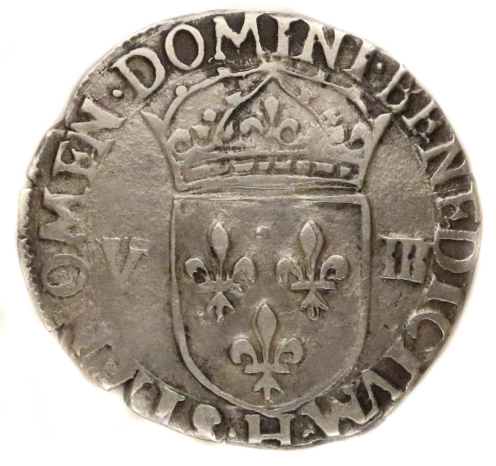 .SIT NOMEN DOMINI.BENEDICTVM.H Béni soit le nom du Seigneur Ecu de France couronné accosté