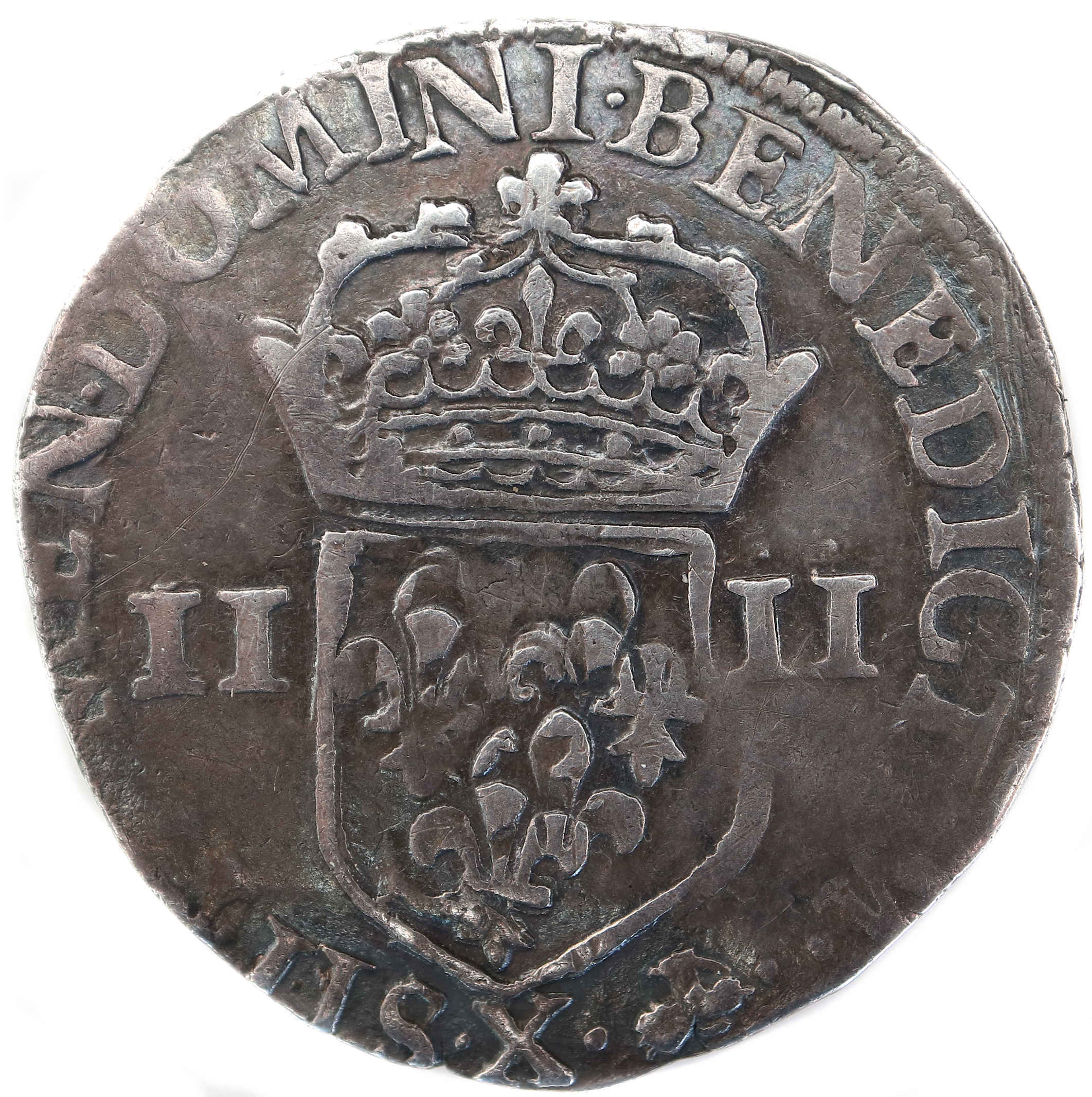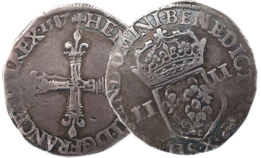 III.D G FRANC.ET.POL.REX.1587 Henri III par la grâce de Dieu roi des Francs et des Polonais Croix fleurdelisée |