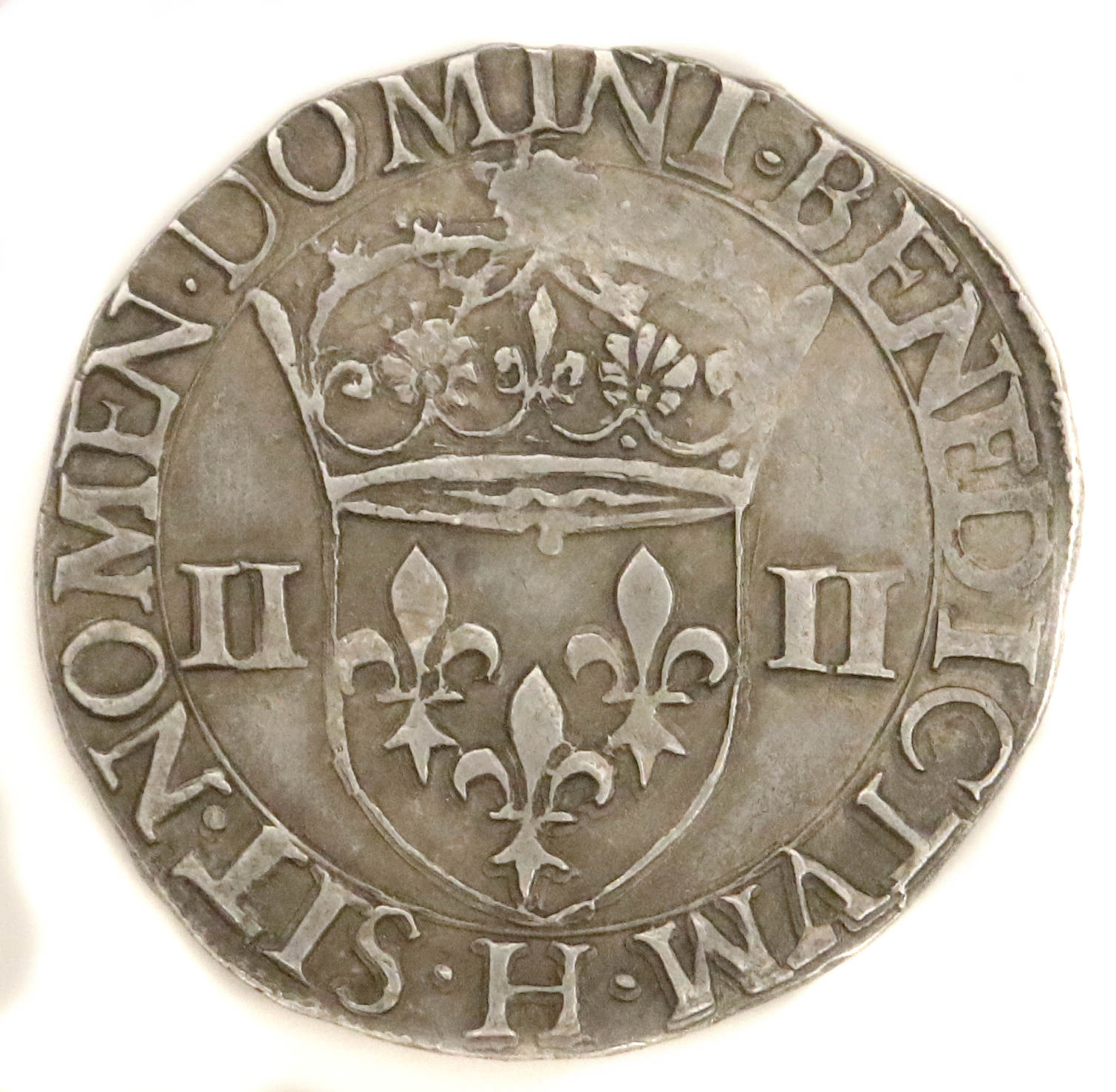 revers à la pointe de l'écu) Point secret : 9 éme (au droit) Millésime : 1587 Chiffre de frappe connu : 43 546 ex (avec huitiémes d'écu) Indice de rareté : R3 |