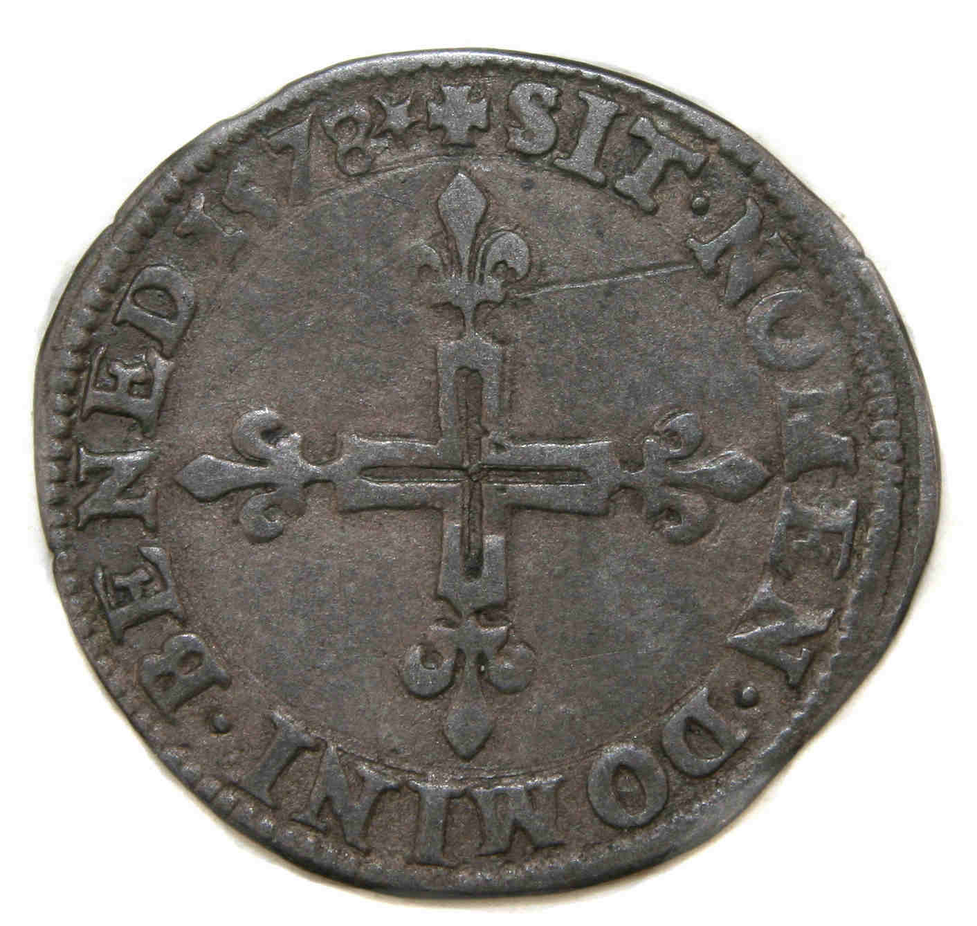 croix. Belle patine grise pour cette monnaie trés agréable.La titulature débute à 6 h.. Axe des