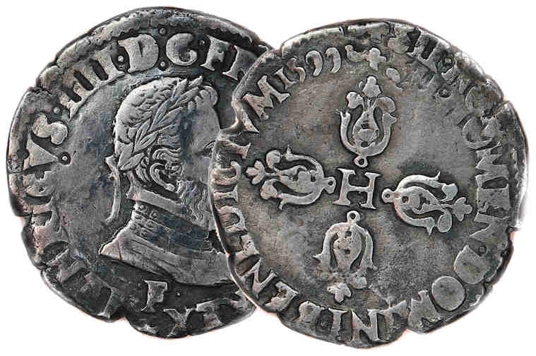 francs à ce type (2éme type dans FRANCIAE IV) furent frappés à ANGERS et TOURS de 1591 à 1600 et
