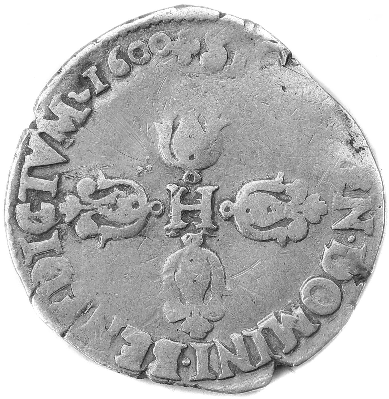 Lettre d'atelier : F (au droit sous l'effigie) Point secret : 7éme (au droit) Millésime : 1600 Chiffre de frappe connu :