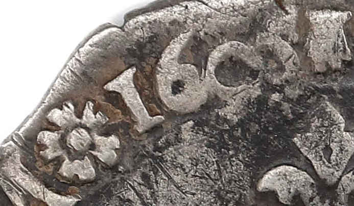 de1602 à 1605 (une rose ) permet d'attribuer à la monnaie le millésime 1605. Entre 1605 et 1608 le maître d'atelier prit un trèfle comme différent. Axe des coins : 12 h |