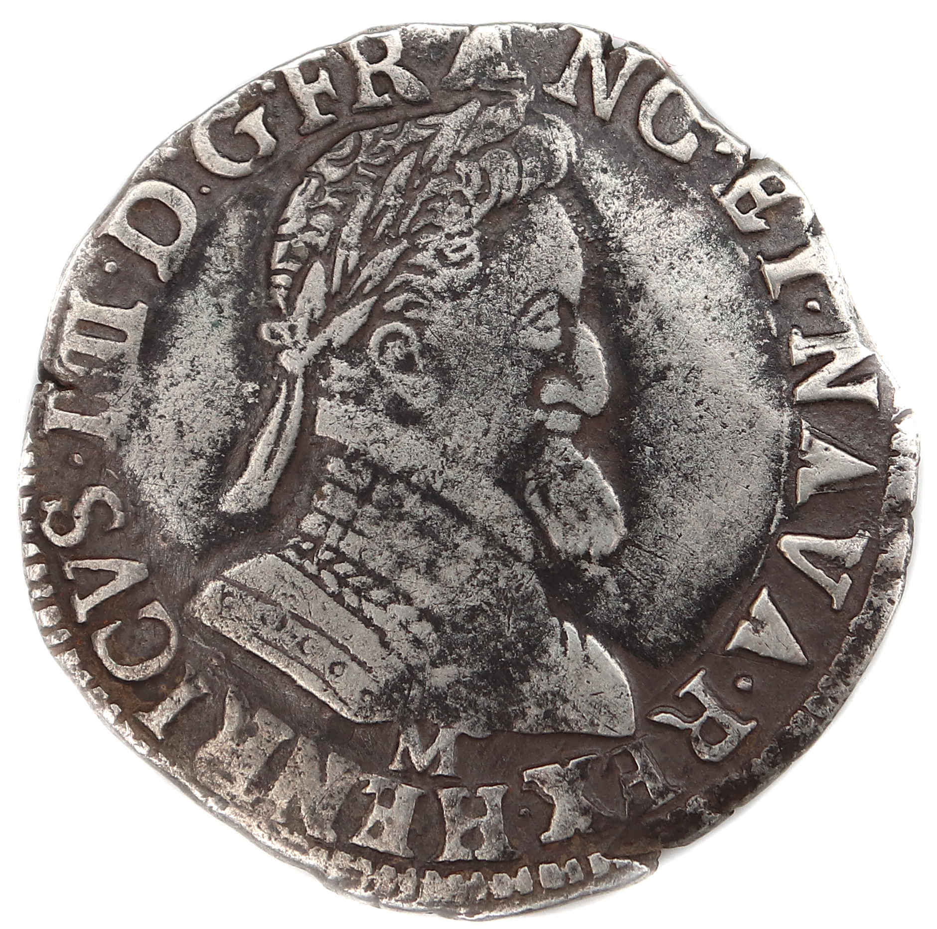 Henri IIIIpar la grâce de Dieu roi de France et de Navarre. Grand buste du roi à la tête laurée et à la