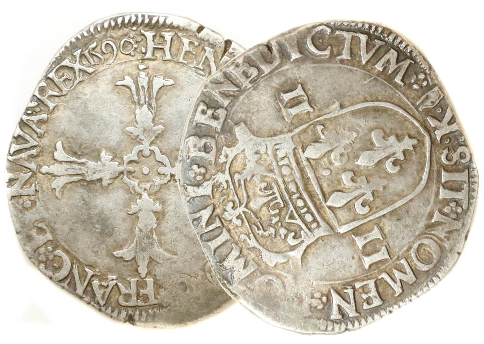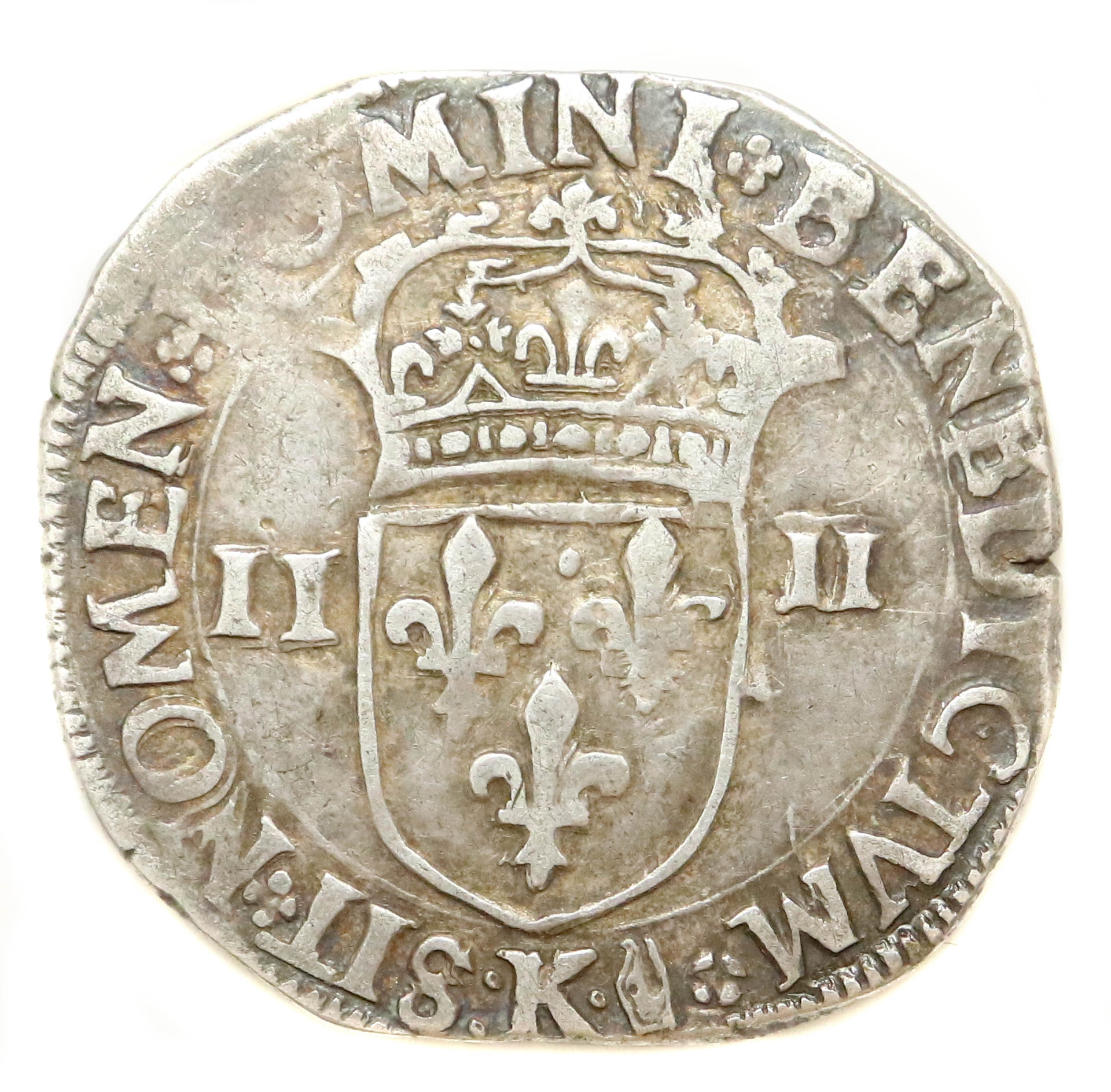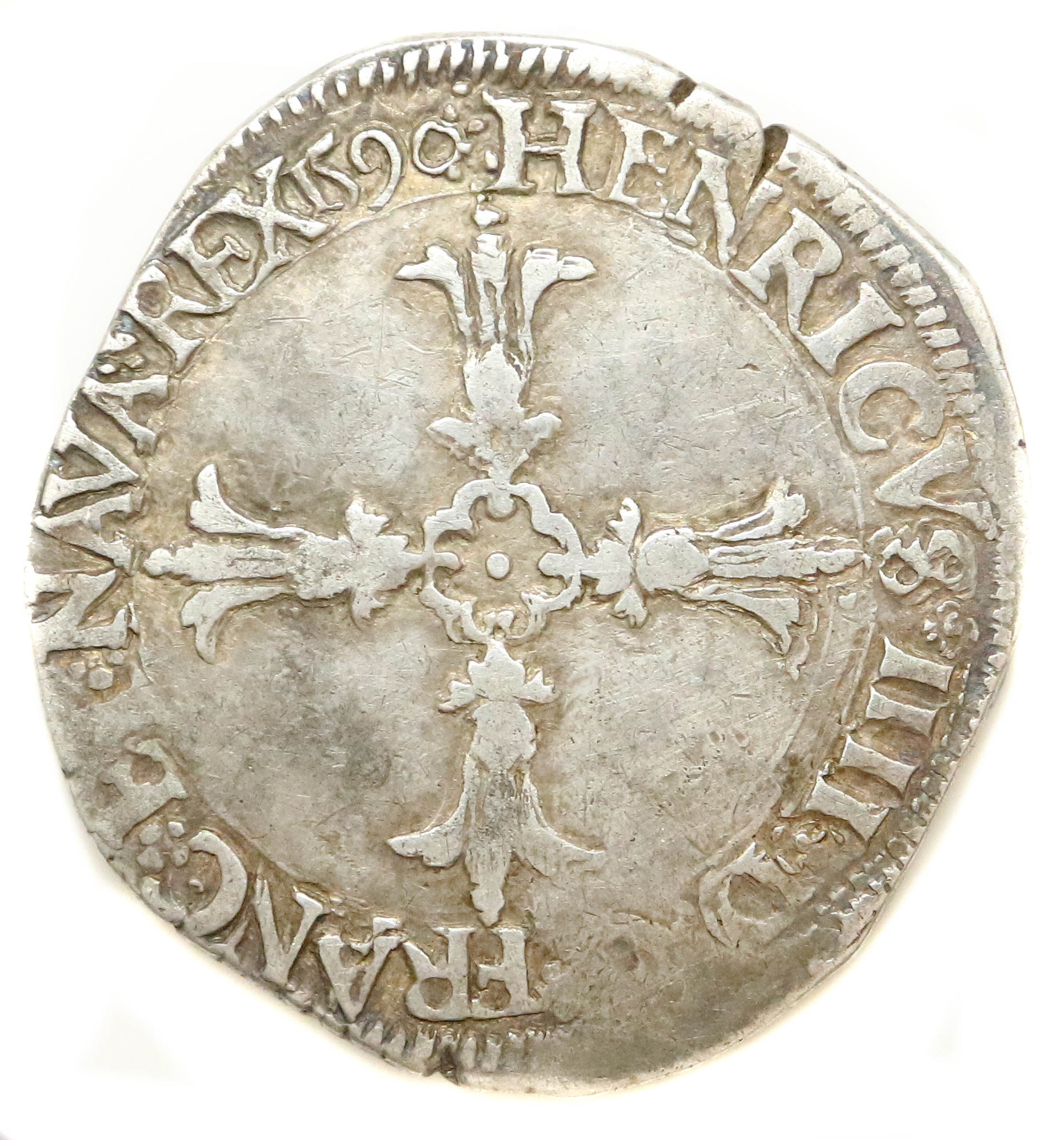 Lettre d'atelier : K (au revers sous l'écu) Point secret : Non Millésime : 1590 Chiffre de frappe connu : 103 471 ex (avec huitièmes) Indice de