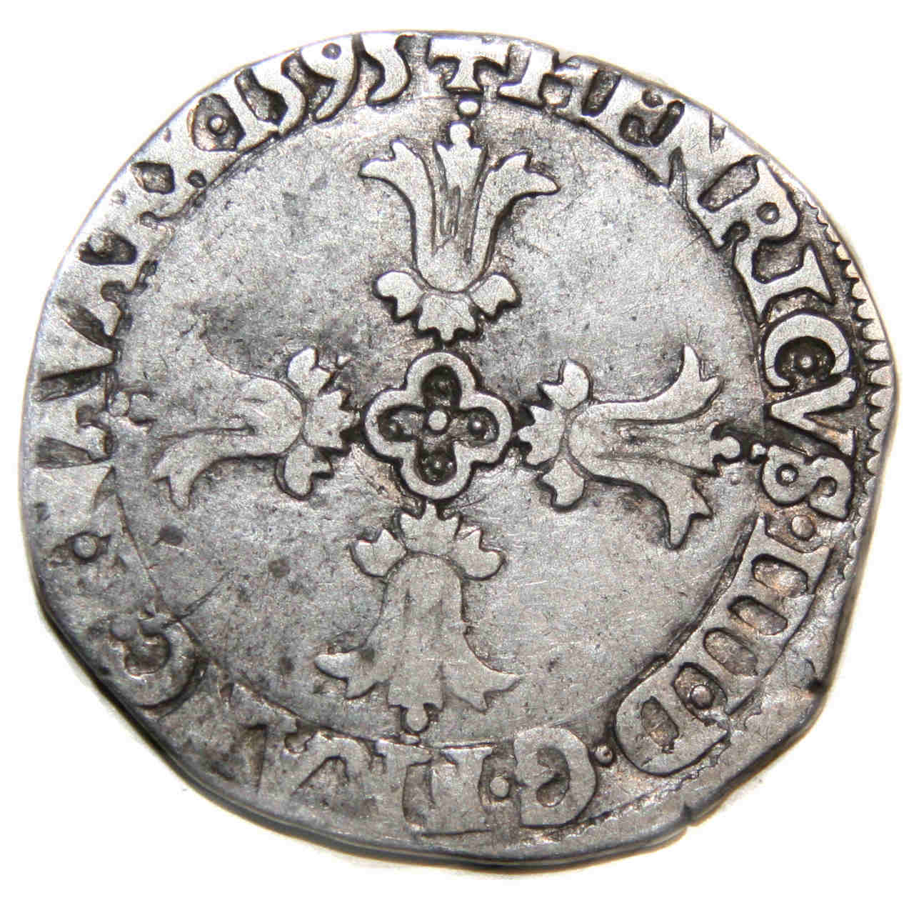 + HENRICVS. IIII.D.G.FRANC.E.NAVA.RX.1595 Henri IIII par la grâce de Dieu
