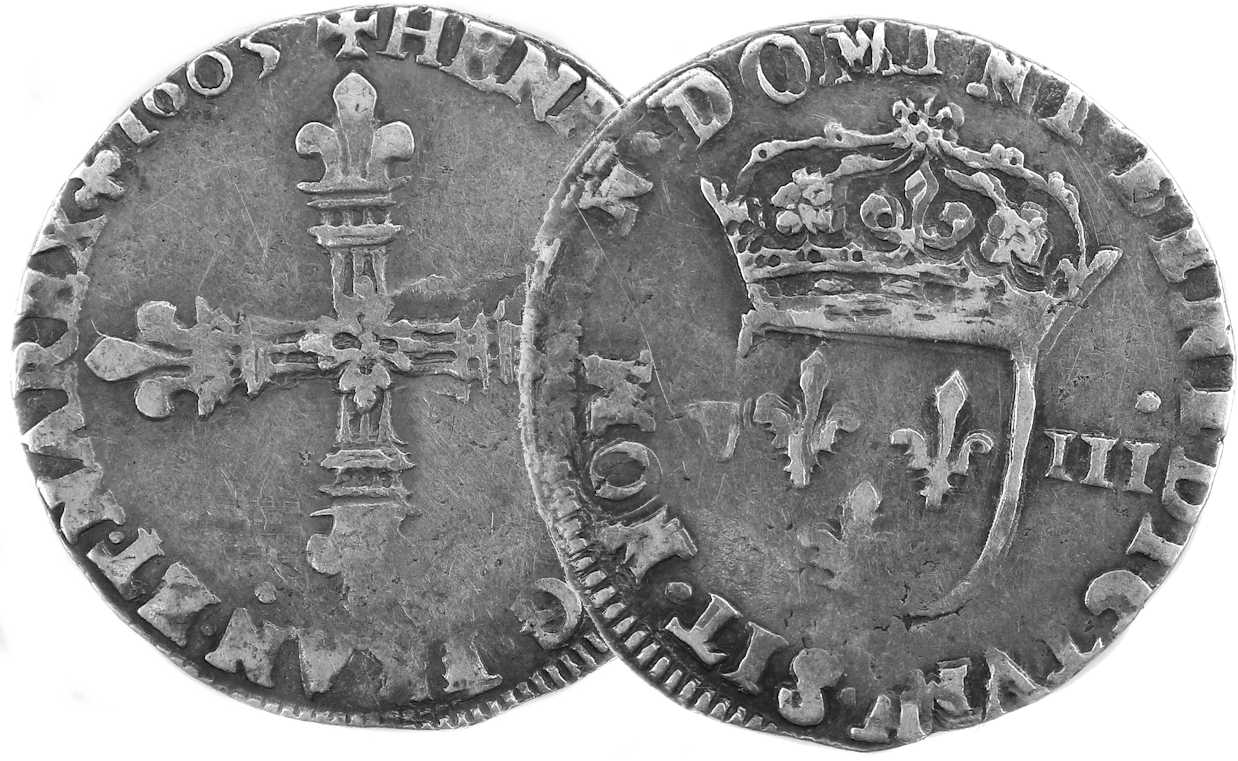 revers) Millésime : 1605 Chiffre de frappe connu : 35 910 ex (avec quarts d'écu) Indice de rareté : R5 |