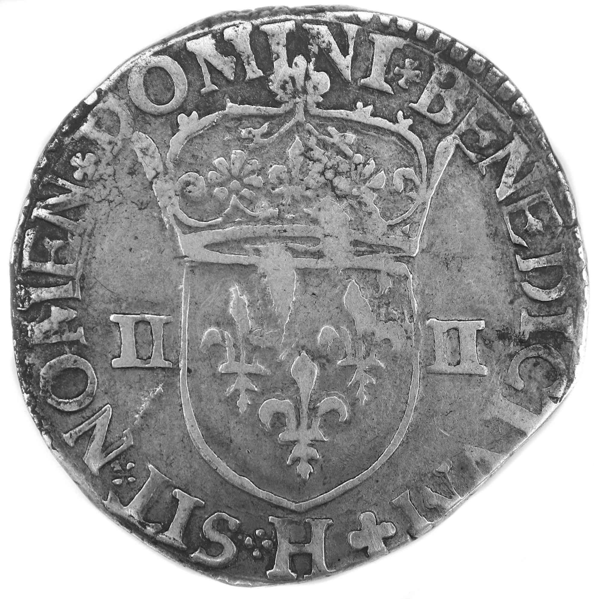 Lettre d'atelier : H (au revers sous l'écu) Point secret : Oui (9éme) Millésime : 1590 Chiffre de frappe connu :