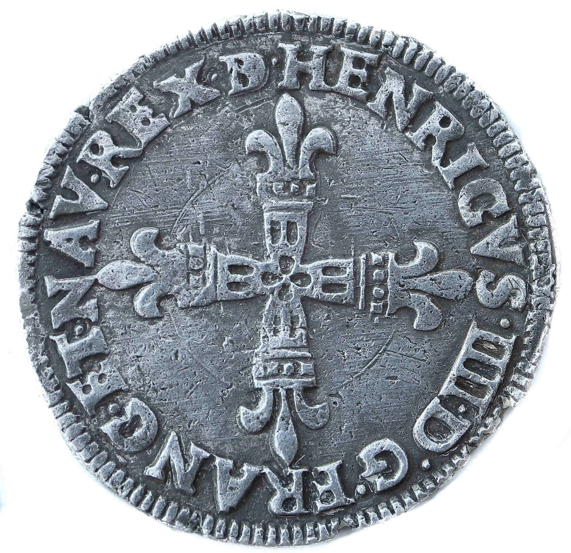 HENRICVS.IIII.D.G.FRANC.ET.NAV.REX(dif) Henri IIII par la grâce de Dieu roi de France et de Navarre. Croix batonnée et fleurdelisée |