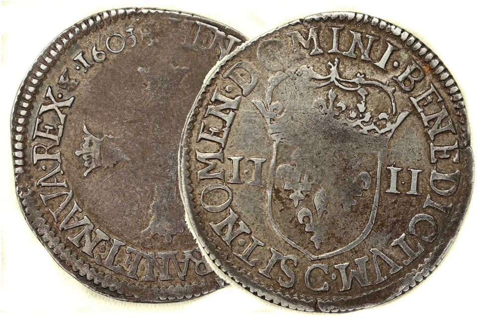 Lettre d'atelier : C (au revers sous l'écu) Point secret : Non Millésime : 1603 Chiffre de frappe connu : 123 606 ex (avec huitièmes) Indice de rareté : Commun |