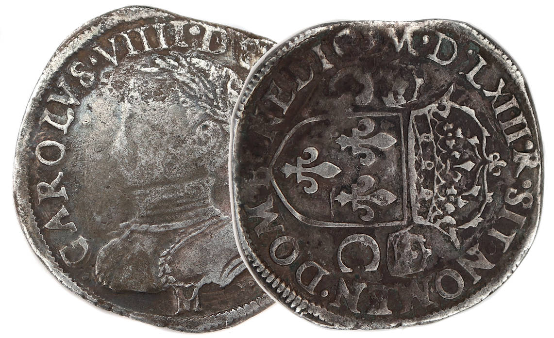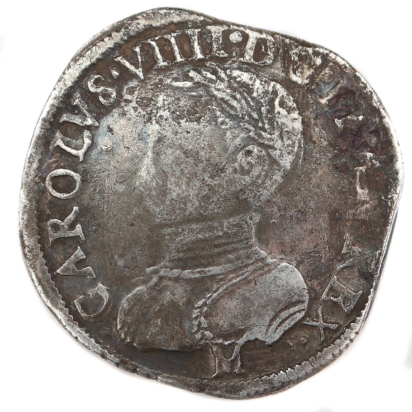 .CAROLVS VIIII..D.G.FRAN.REX. M Charles VIIII par la grâce de Dieu roi des Francs Buste du roi, à droite, cuirassé