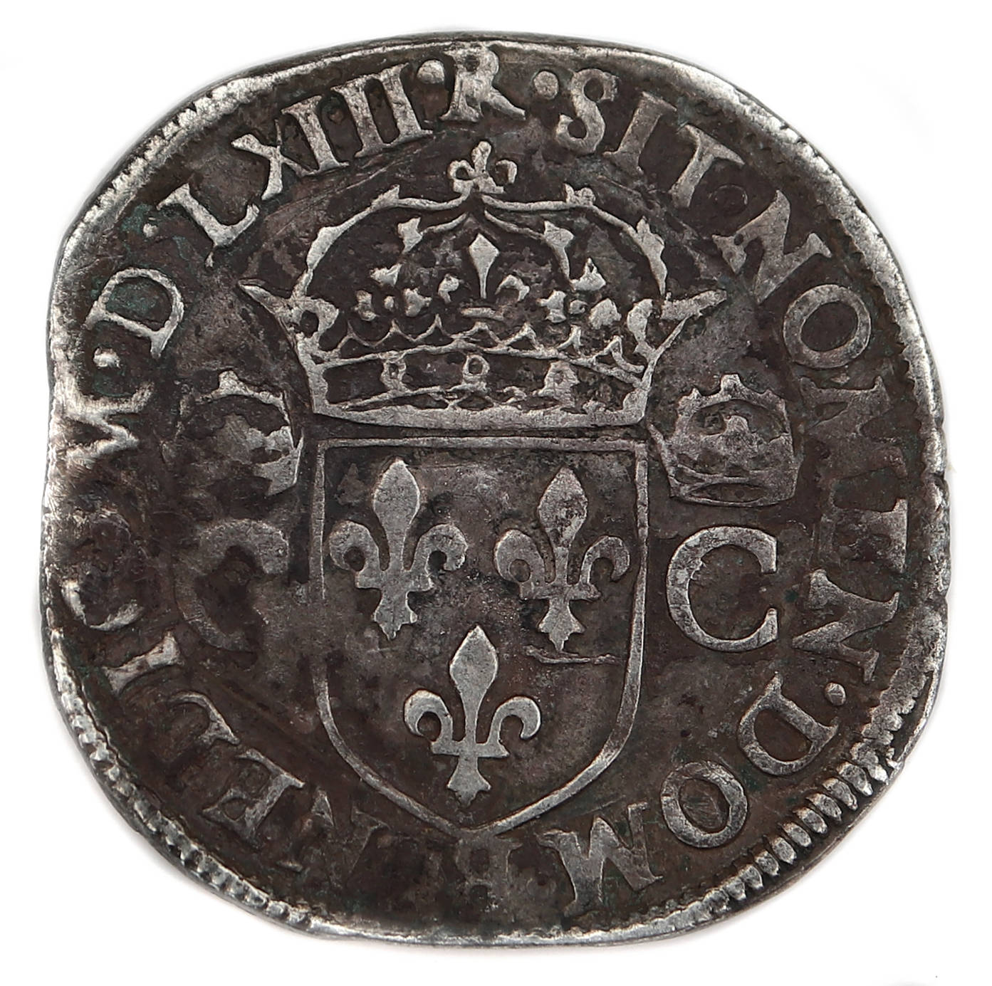 .SIT.NOMEN.DOM.BENEDIC. MDLXIII.R Beni soit le nom du Seigneur Ecu de France couronné accosté