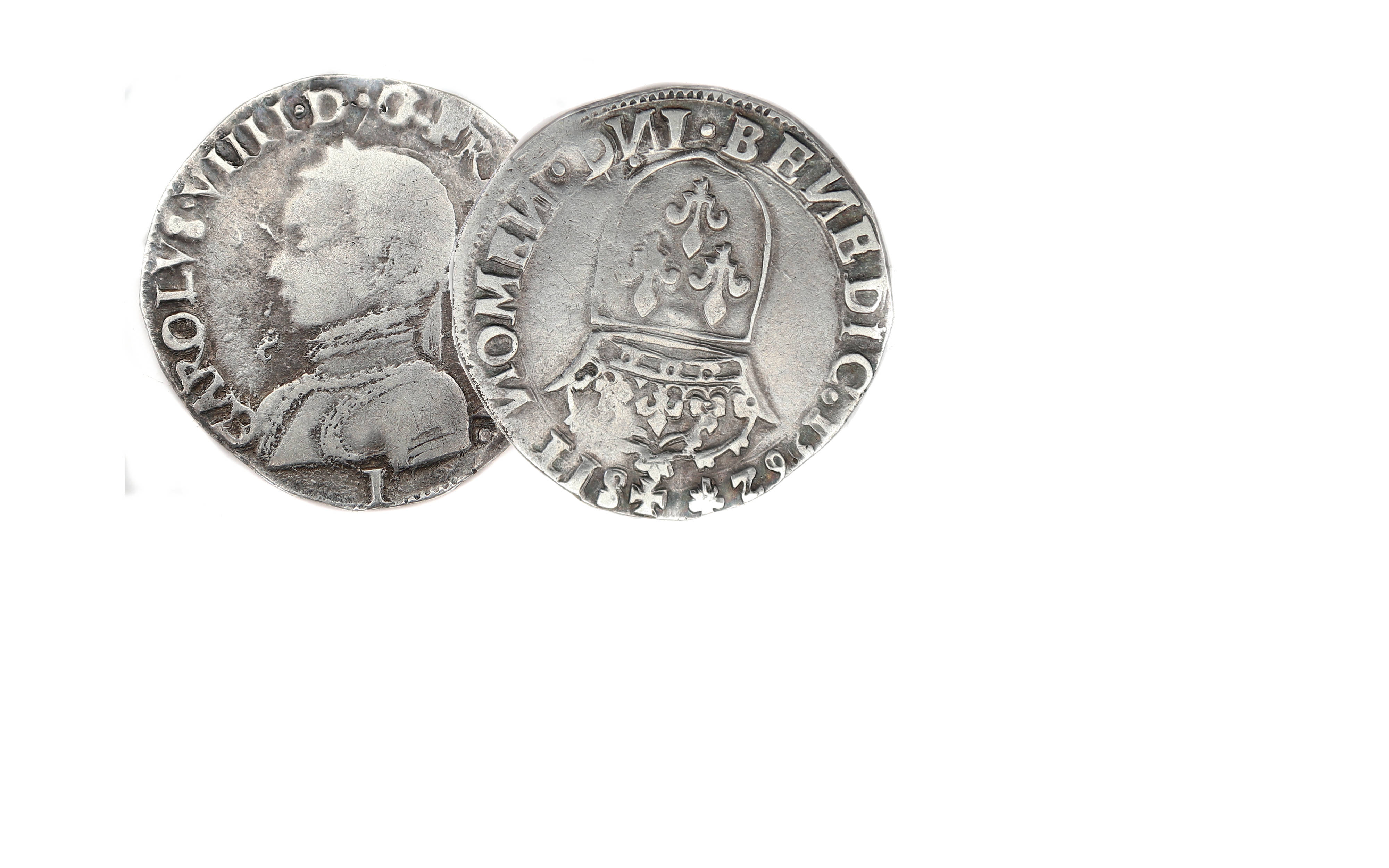 CAROLVS.VIIII.D.G.FRANCO.REX. I Charles VIIII par la grâce de Dieu roi des Francs Buste du roi, à gauche, cuirassé