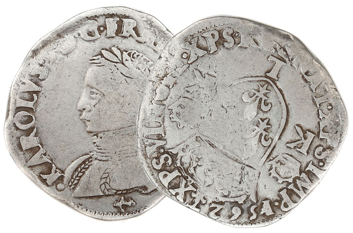 furent frappés à BAYONNE de 1562 à 1575. Ces testons se distinguent par