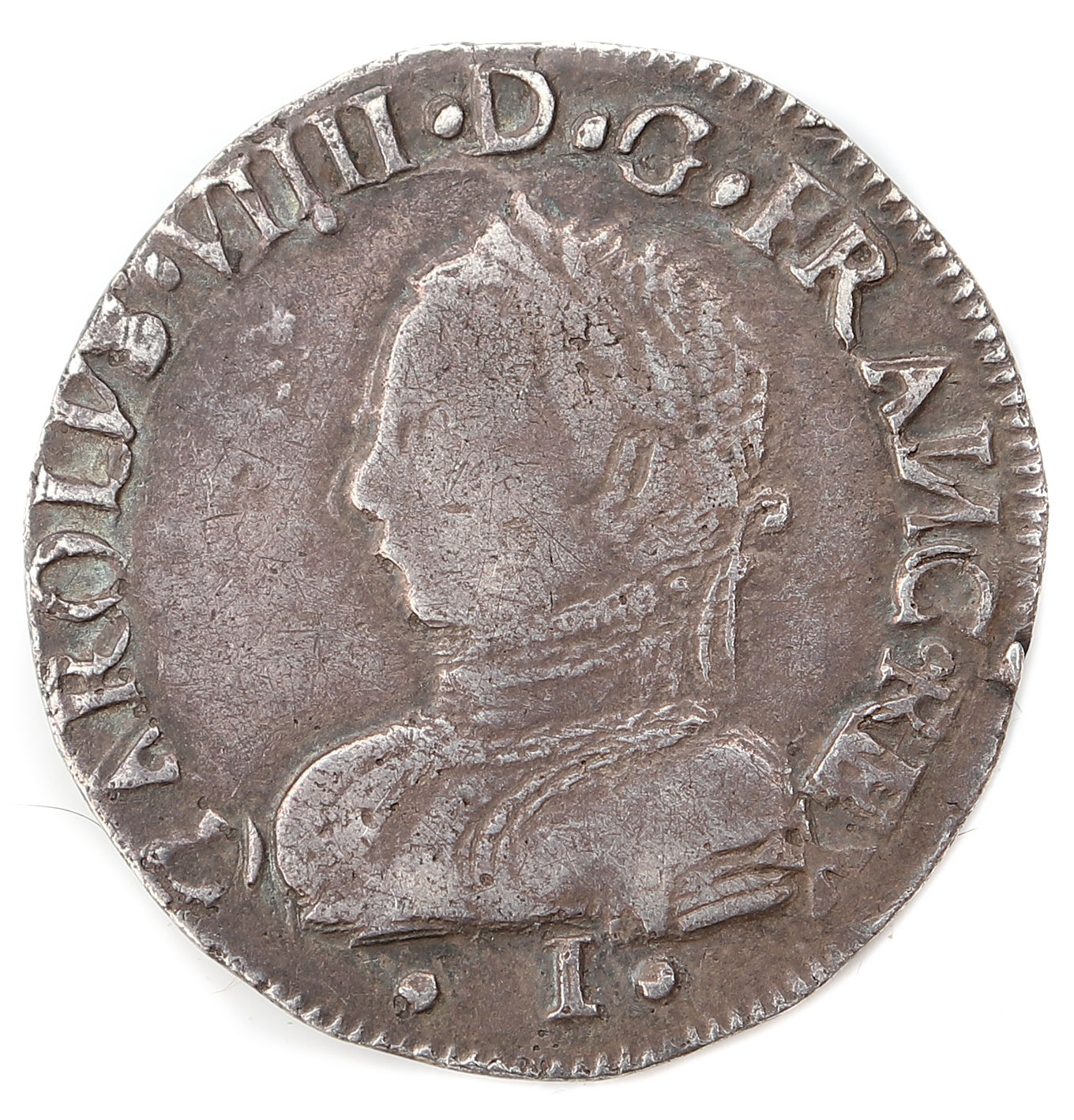 .CAROLVS.VIIII.D.G.FRANC.REX. I Charles IX par la grâce de Dieu roi des Francs Buste du roi, à droite, cuirassé