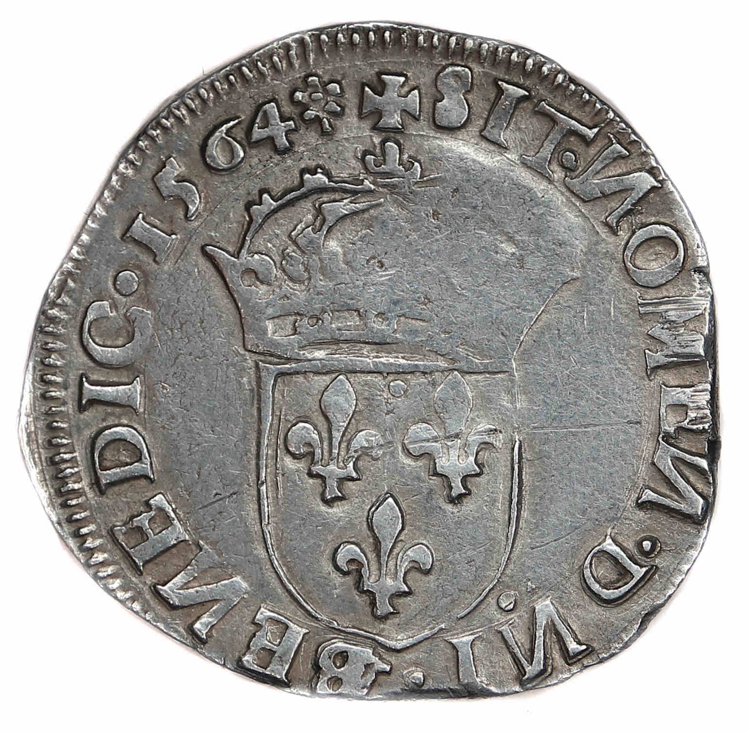 +SIT.NOMEN.DNI.BENEDIC.1564 (dif) Que le nom du Seigneur soit béni Ecu de France couronné |