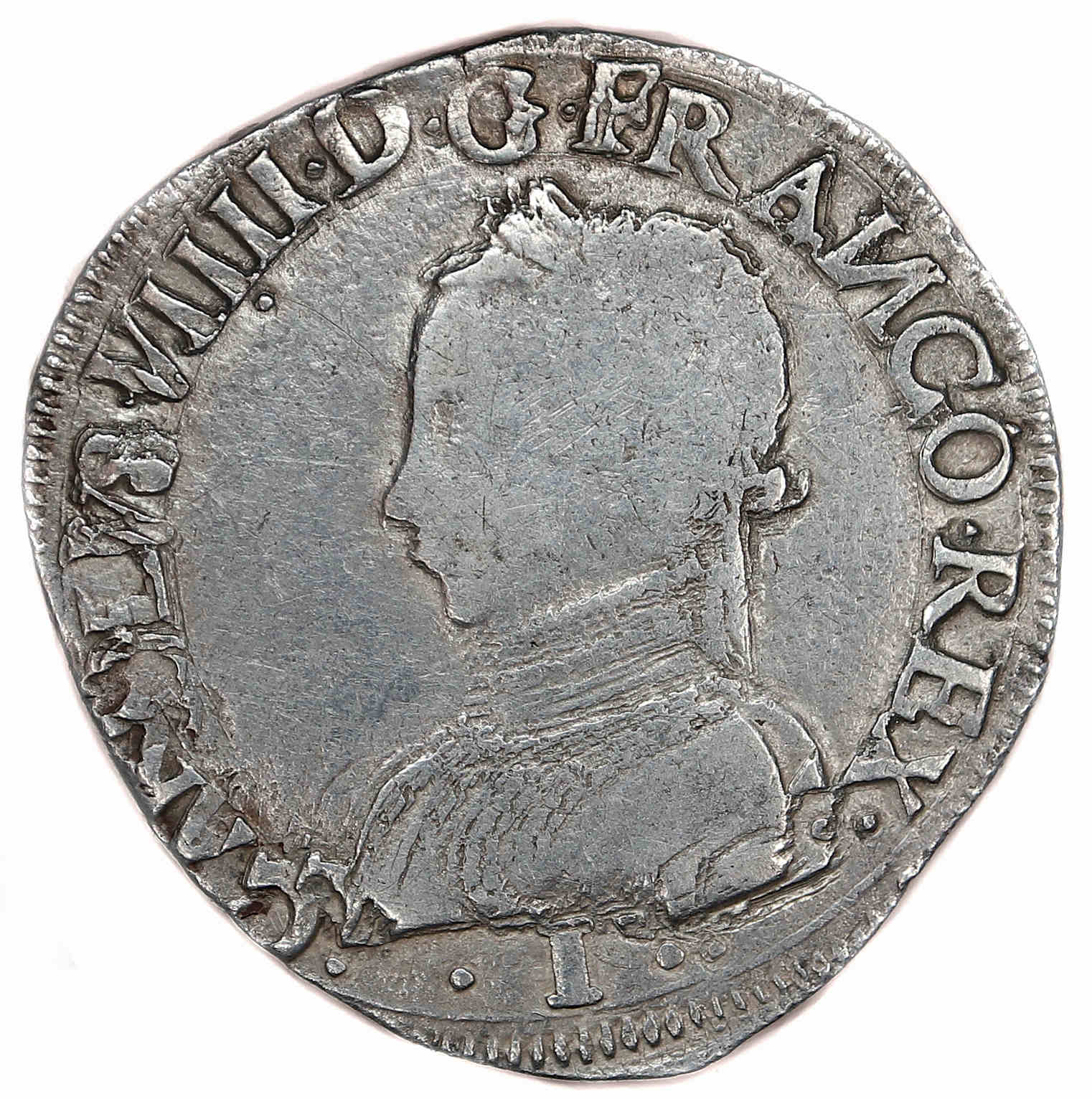 .CAROLVS.VIIII.D.G.FRANC.REX. I Charles IX par la grâce de Dieu roi des Francs Buste du roi, à droite, cuirassé