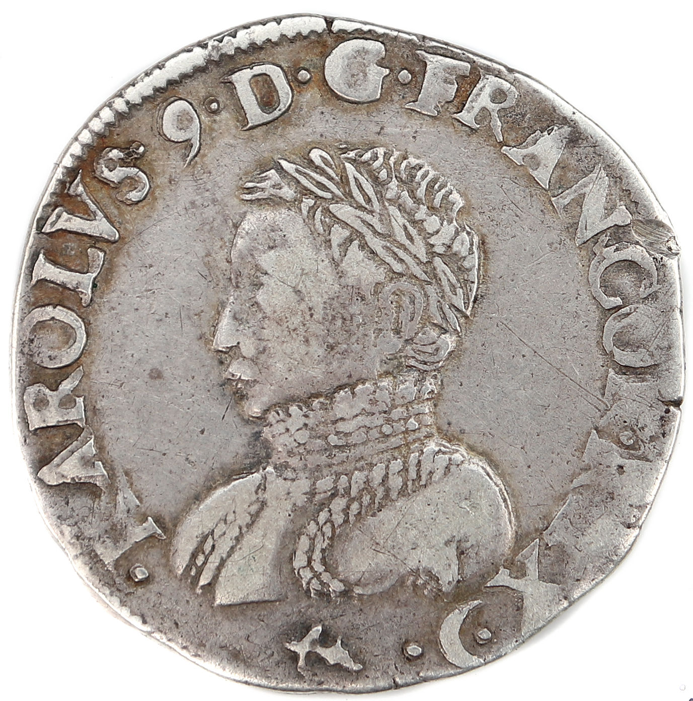 .KAROLVS9..D.G.FRANCO.REX. dif.ancre Charles VIIII par la grâce de Dieu roi des Francs Buste du roi, à droite, cuirassé